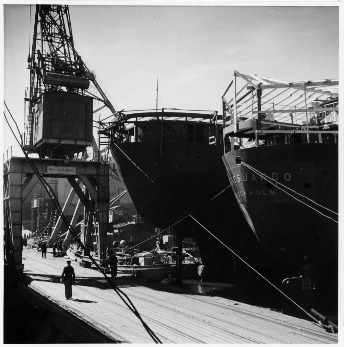 Fotografiet är sen tidigare daterat till juni 1946. Fartyget KARESUANDO, som syns till höger på bilden, levererades till sina ägare Trafik AB Grängesberg-Oxelösund 27 juni 1946. Fotografiet är därmed taget före detta datum, sannolikt vid utrustningskajen.