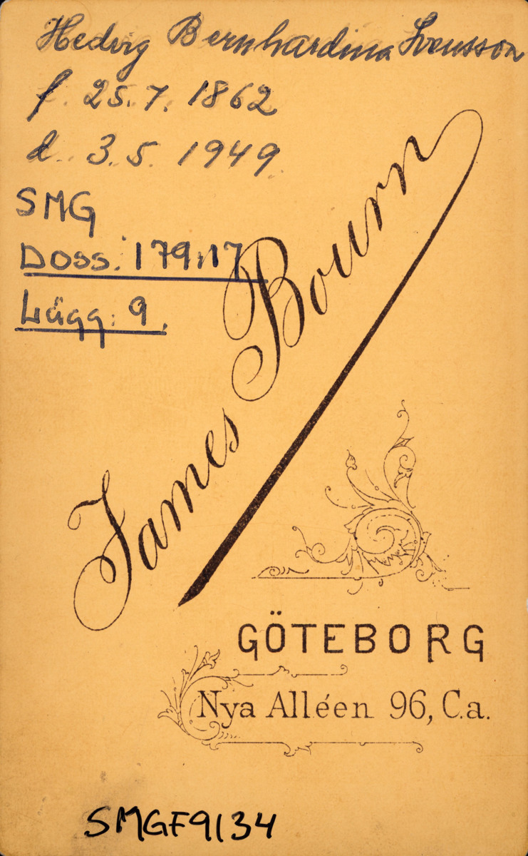 Påskrift: Hedvig Bernhardina Swensson f 25.7.1862 d.3.5.1949