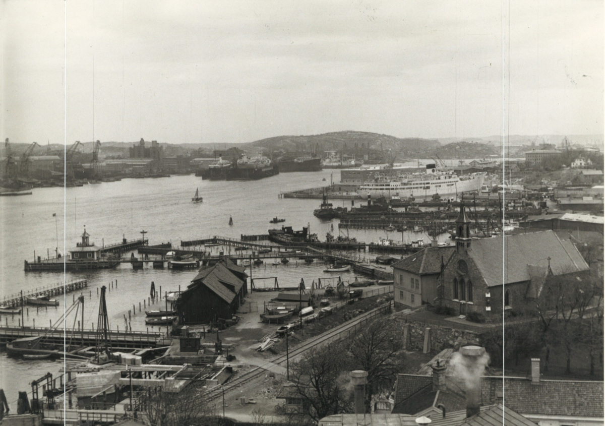 På fotografiet syns bland annat Klippans ångbåtsbrygga, St Birgittas kapell och Sjömagasinet. I bakgrunden skymtar ett passagerarfartyg vid Majnabbeterminalen. Denna byggdes 1951, varpå fotot är taget efter detta år.