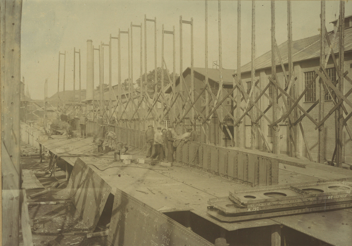 Arbete vid Eriksbergs varv i samband med byggnationen av SYDLANDs nya förskepp