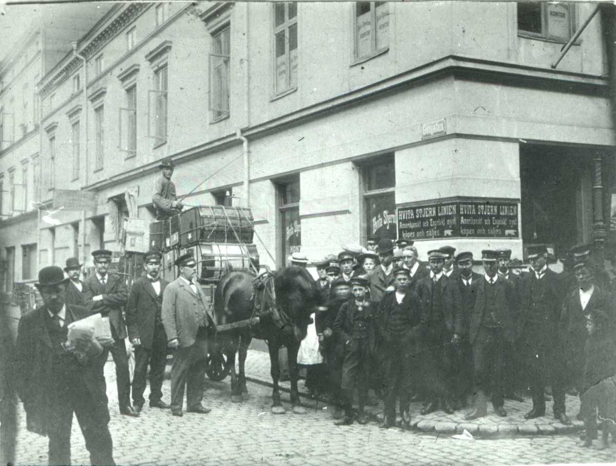 Agenter utanför Vita Stjärn Liniens kontor på Sillgatan