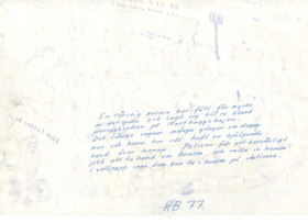Påskrift: En törstig person har fått för mycke av det goda och lagt sig till ro bland järnvägsspåren på Masthuggskajen. Det växlas vagnar många gånger om dagen men vår herrehar väl haft en hjälpande hand över honom, Polisen får ett besvärligt jobb att ta hand om honom, och rulla in honom i vellpapp inan dom kan ta i honom på stationen. KB. 77.