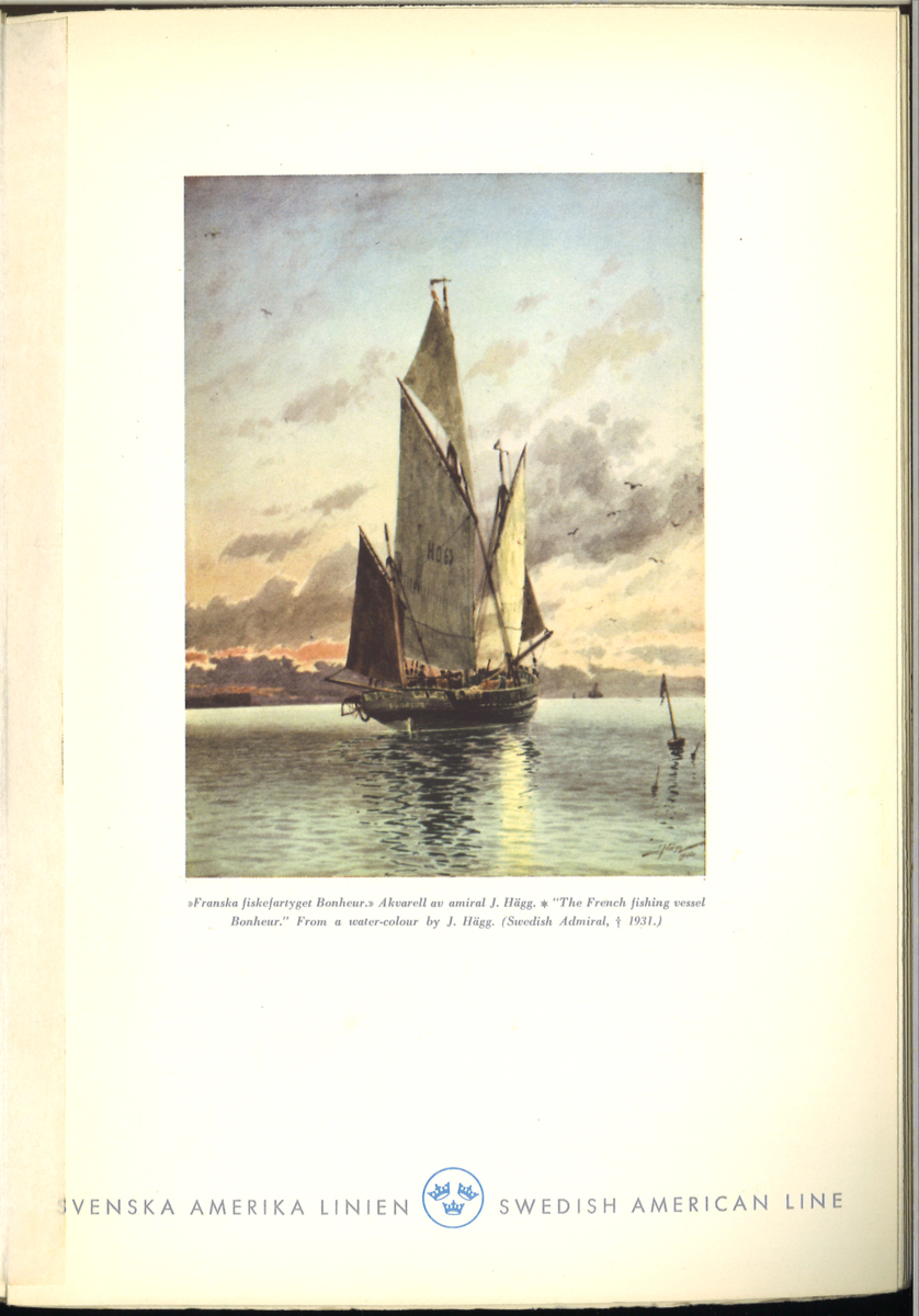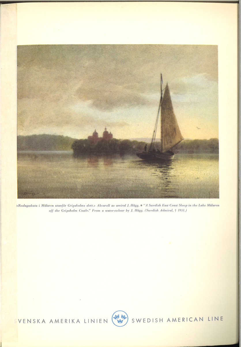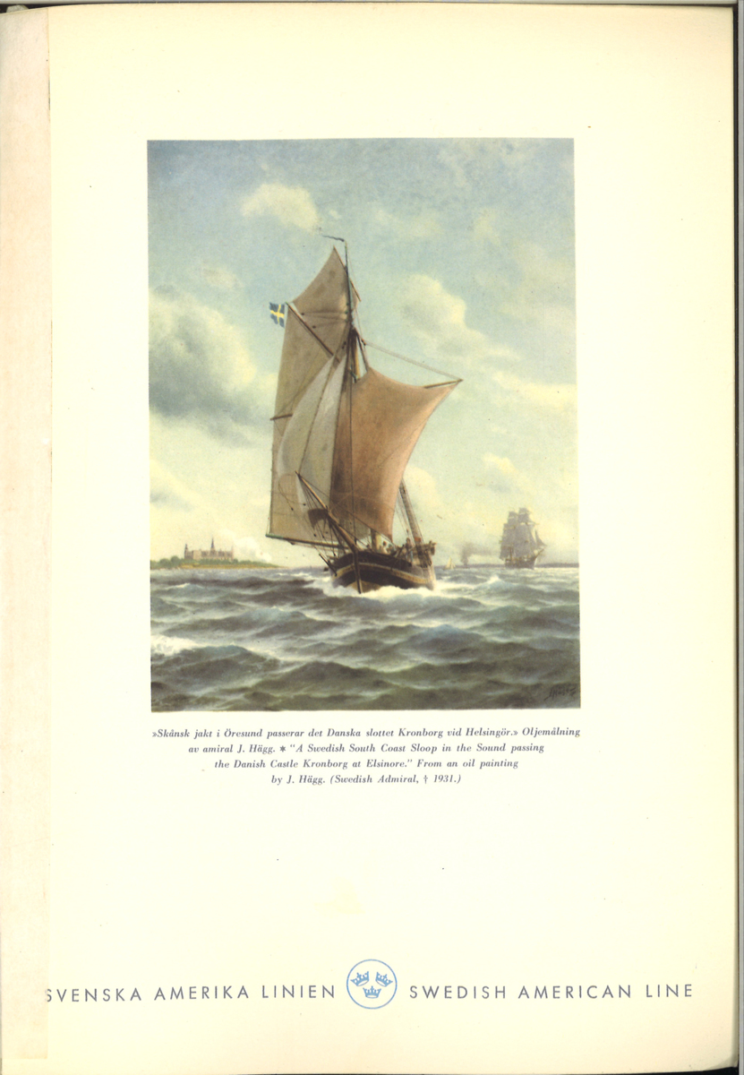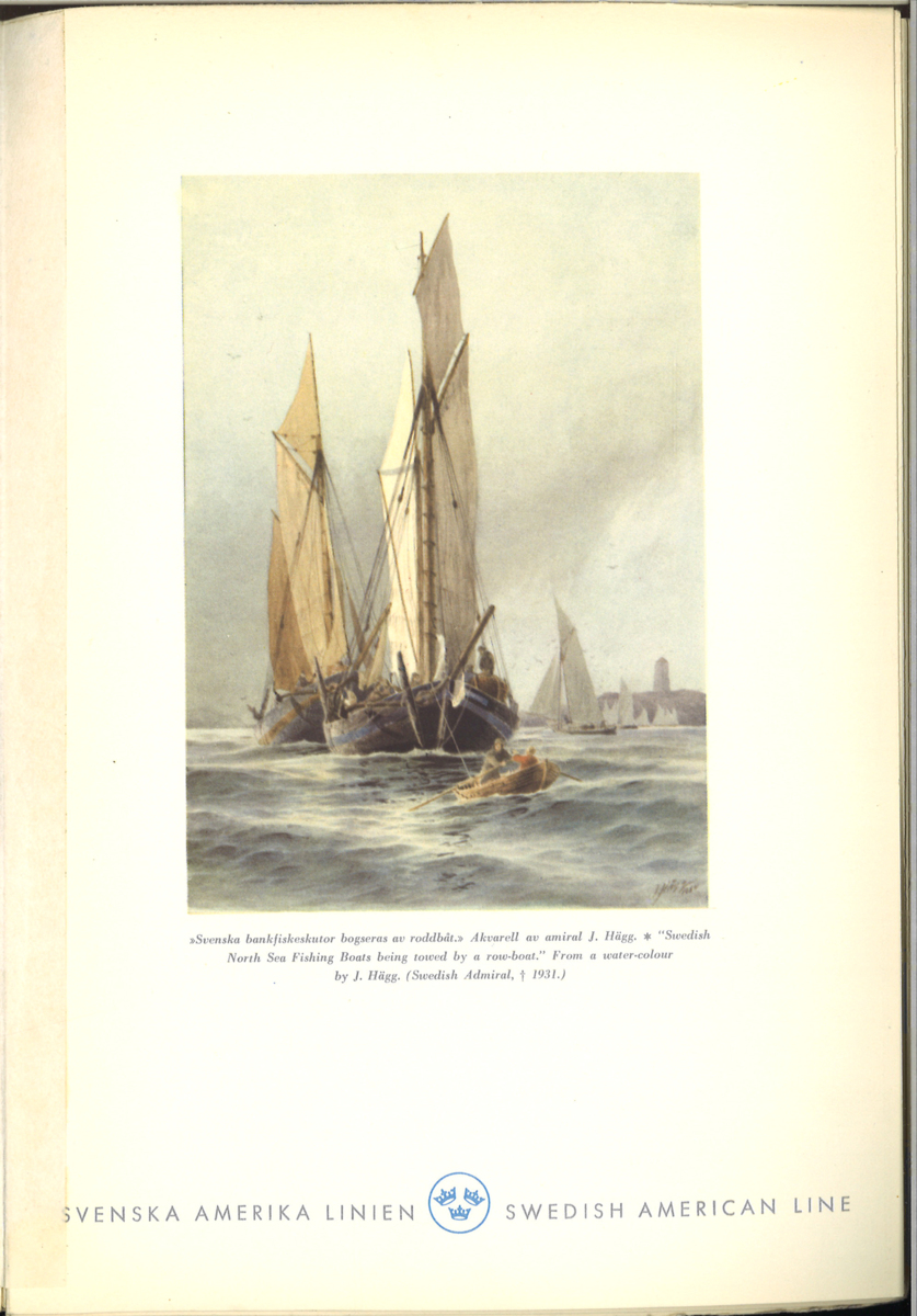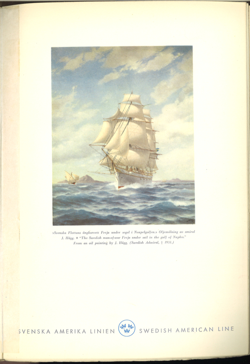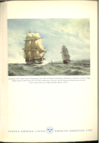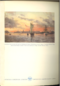 Autografhäften från Svenska Amerika Linien, i hopklistrade i ett häfte. Motiven på framsidan är målningar av Jacob Hägg. Alla autografhäften är oanvända.
