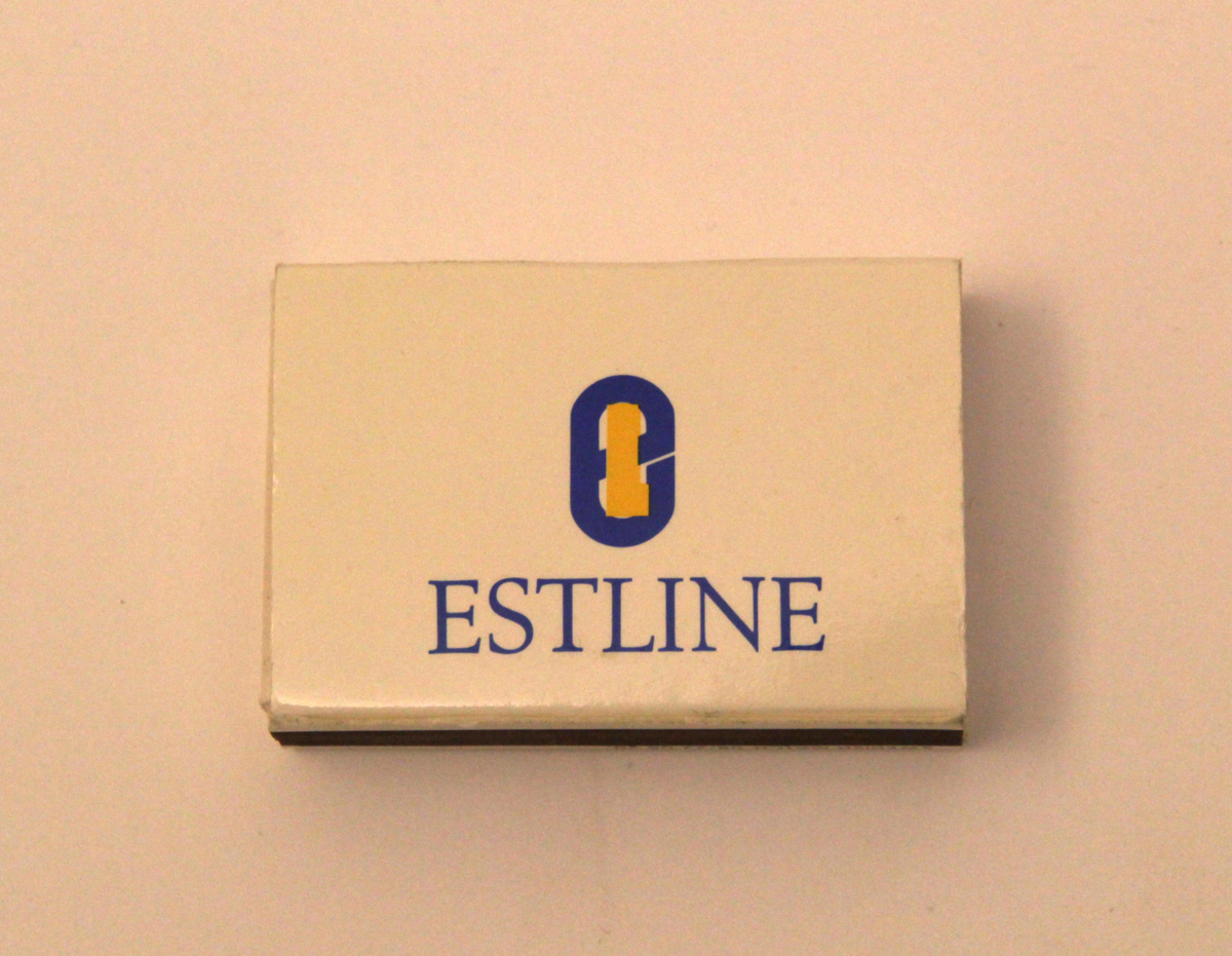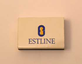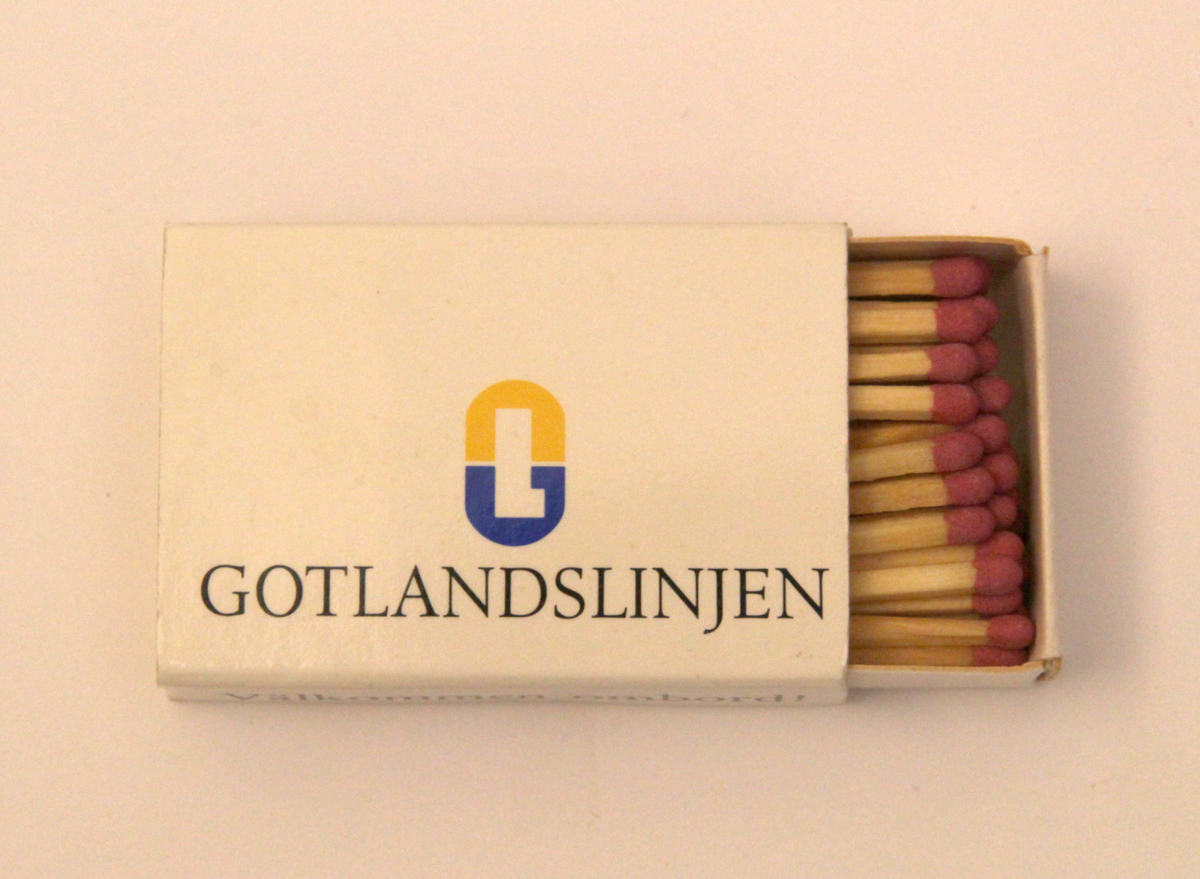 Tändsticksask i papper, innehåller tändstickor i trä med röd tändmassa.