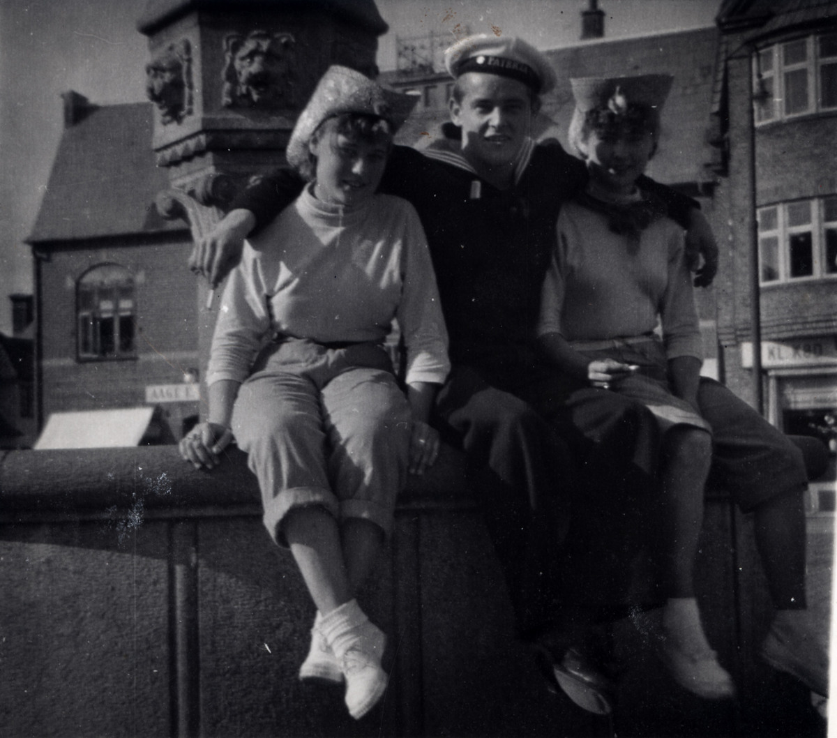 Alarik Edvardsson har uniform på sig samt sjömansmössa. På hans mössband står det PATRICIA omgivet av två kronor. Kronornas förekomst och placering betyder att fotografiet är taget under tjänstgöring i Flottan. På bilden syns även två flickor som enligt gåvogivaren ville se militären. Fotot är taget i Danmark.