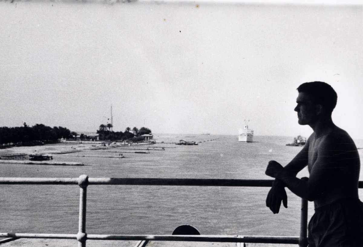 Fartyget passerar Suezkanalen.