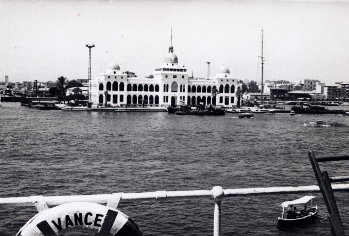 Taget under en resa med tankfartyget AVANCE 1956-1957. Fartyget passerar Suezkanalen på bilden.
