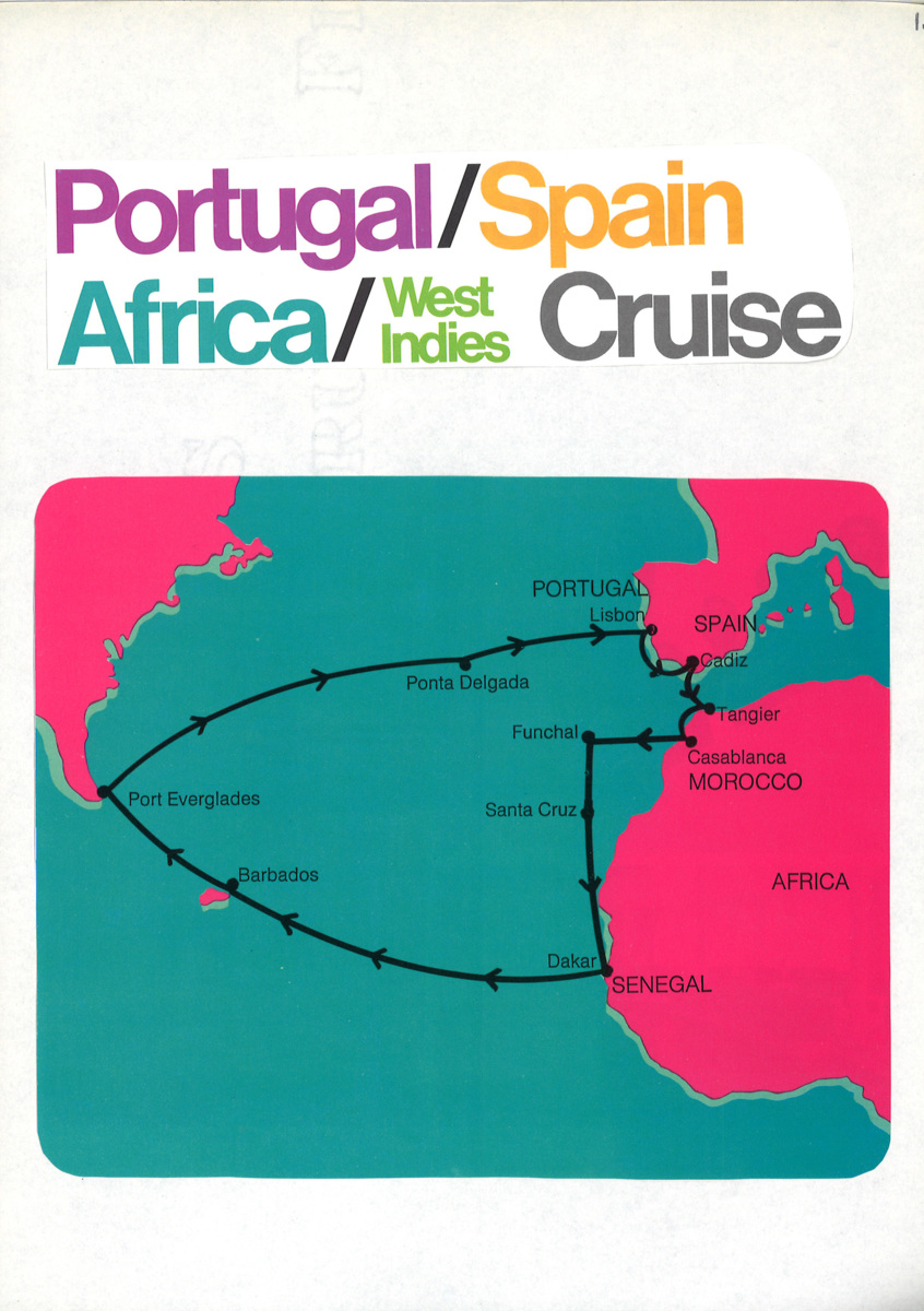 Fotografiet är taget ombord GRIPSHOLM under en kryssning till Portugal, Spanien, Afrika och Västindien. Kryssningen avgick från Port Everglades i Florida, USA, 14 oktober 1974 och återkom 14 november samma år.