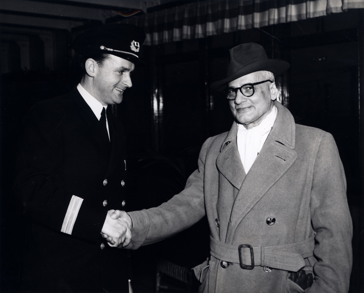 Curt Dawe skakar hand med okänd passagerare