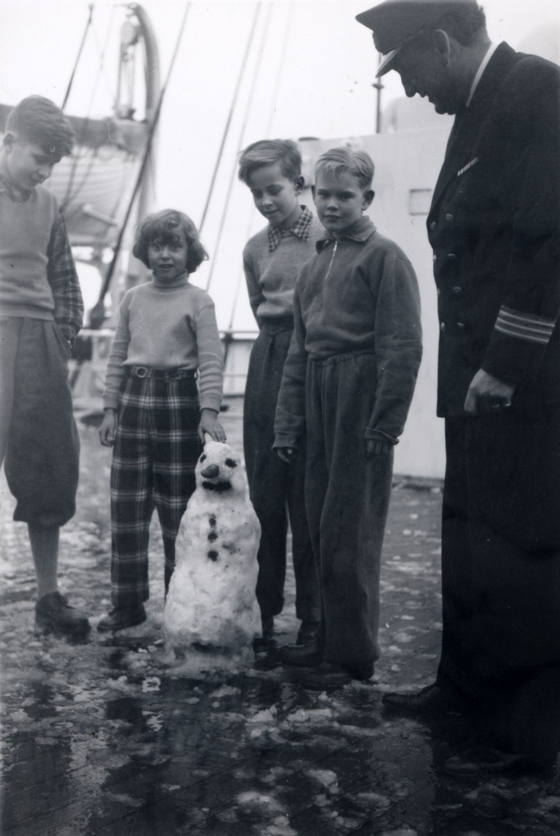 Barn med snögubbe på GRIPSHOLMs däck