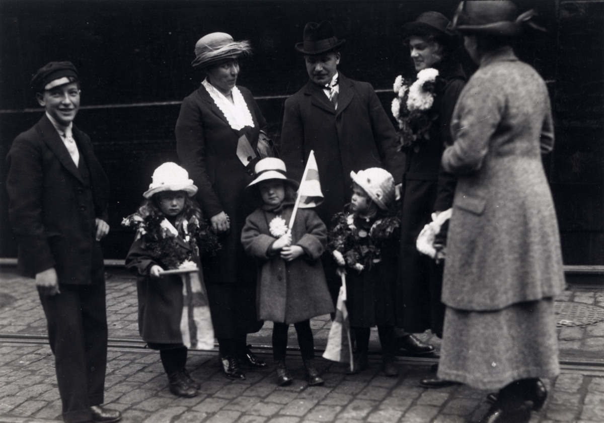 Påskrift: S.A.L. passagerare på kajen i väntan på att gå ombord