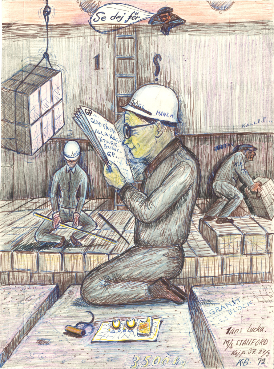 Teckning, arbete i lastutrymmet ombord STANFORD