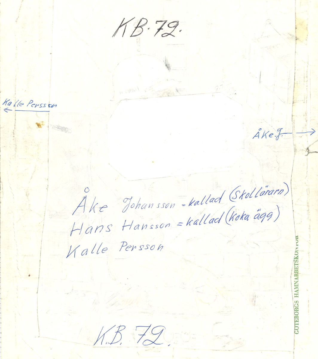 Påskrift: Åke Johansson = kallad (Skolläraren). Hans Hansson = kallad (Koka ägg). Kalle Persson