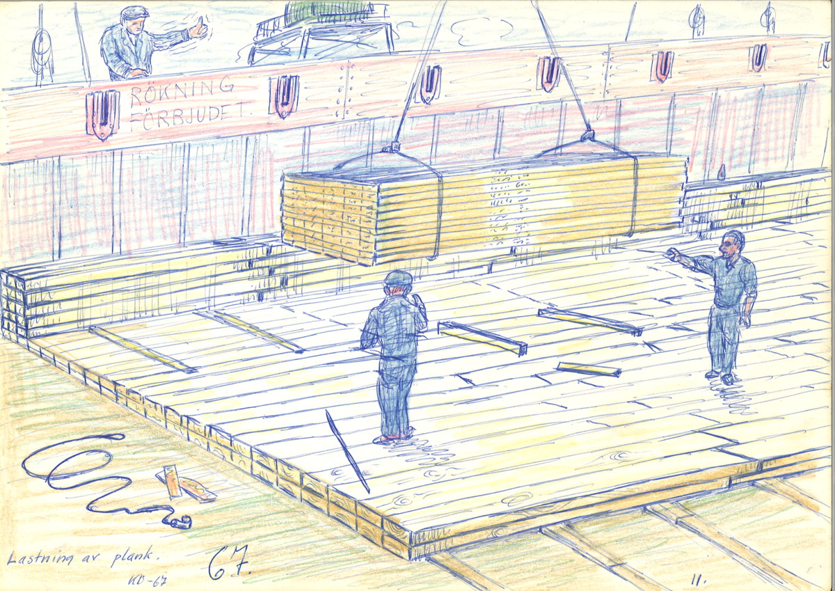 Teckning, lastning av plank