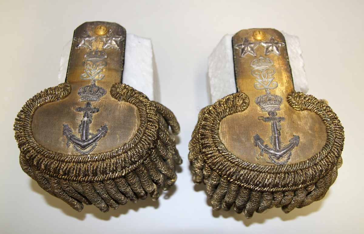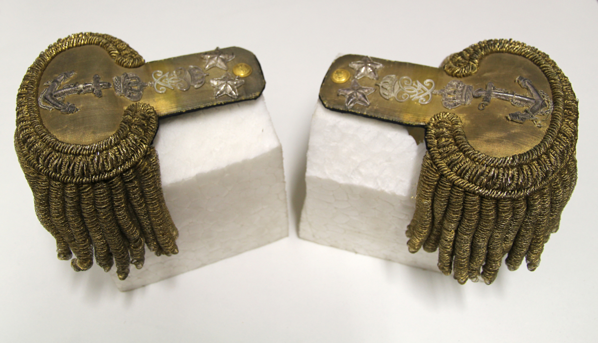 Uniformen består av amiralsfrack, guldgaloner, byxor, hatt, epåletter sabelkoppel och svensksundskärp. Epåtterna har tillhört amiral Wilhelm Dyrssen men överläts genom testamente till amiral C.l. Lindström.
