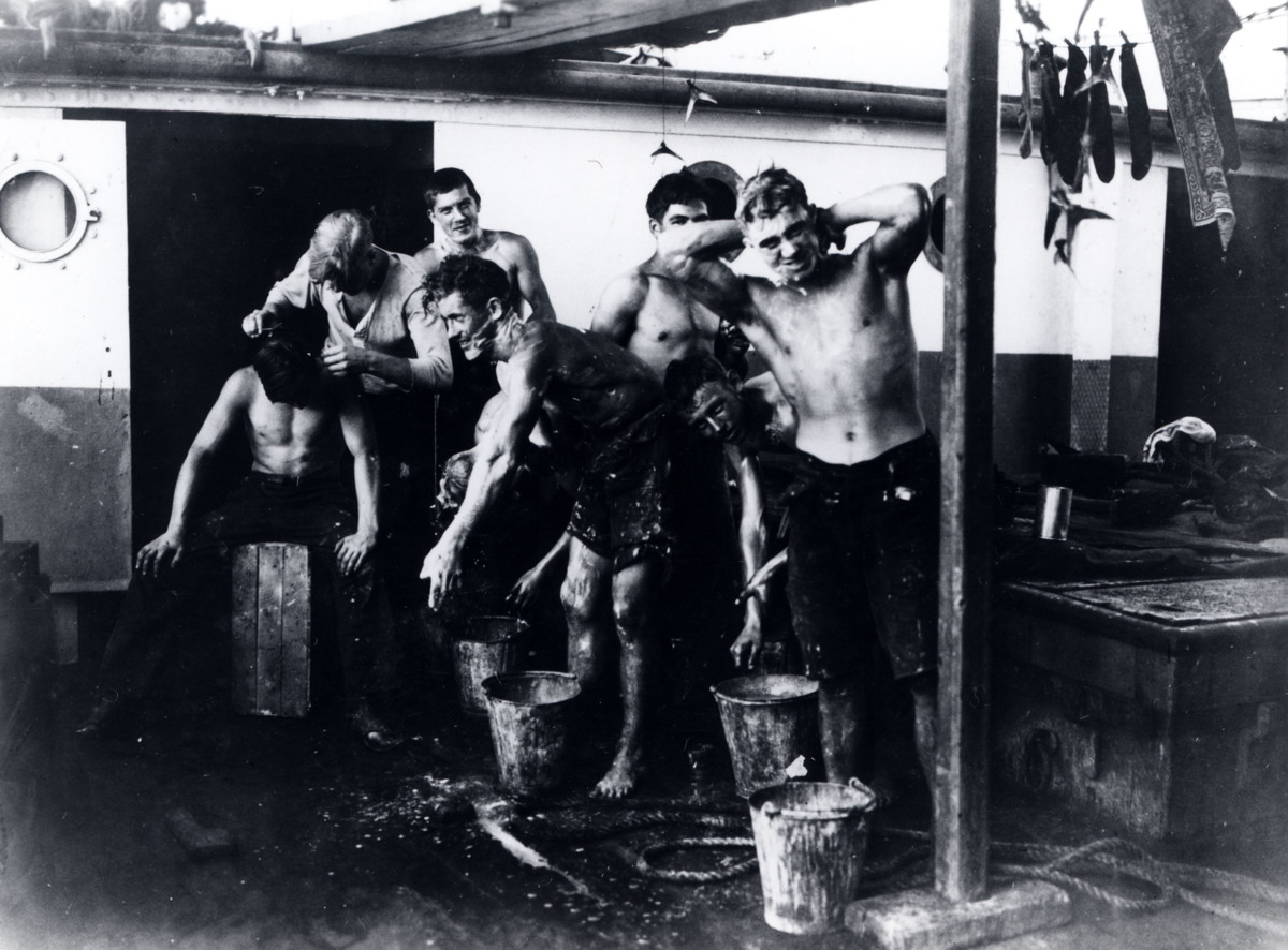 Bildtext ur albumet: Tvättning efter slutat dagsverke