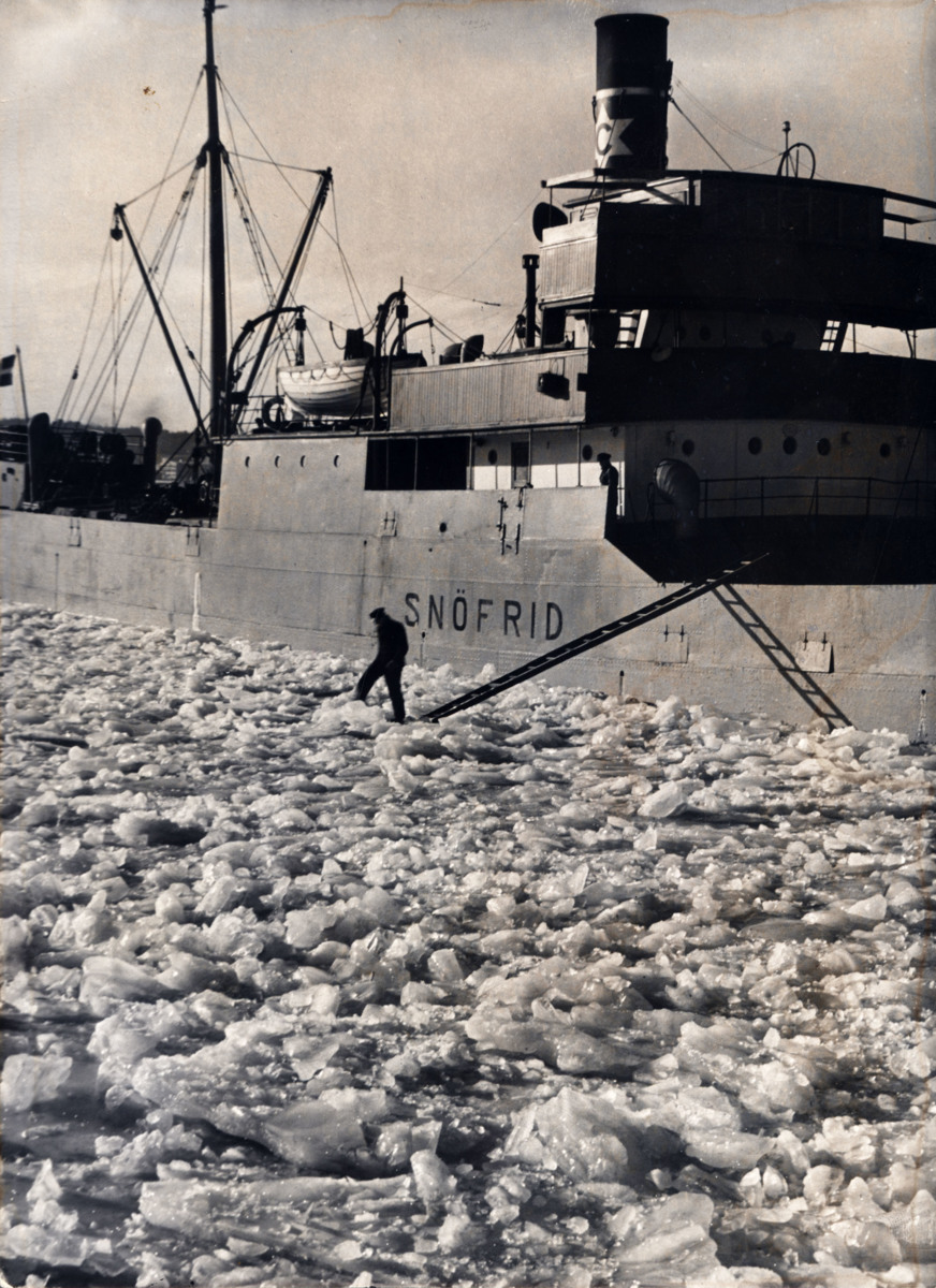 Fartyget SNÖFRID i Göteborgs hamn vintern 1946/1947.