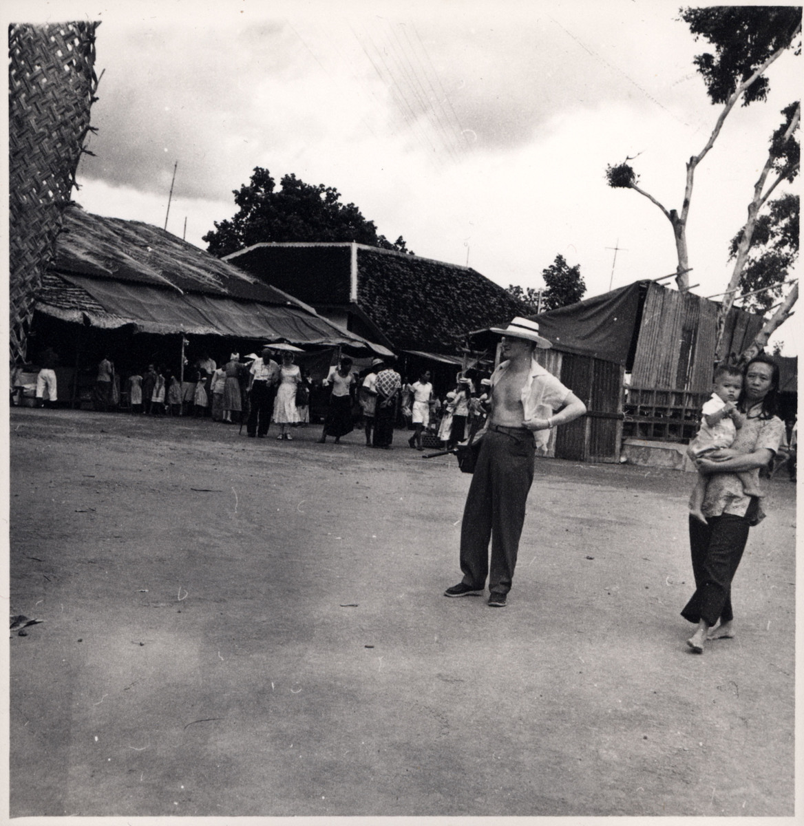 En besättningsman från KUNGSHOLM turistar på Bali. Fartyget var på jorden-runt kryssning på våren 1956. Under kryssningen fick även besättningen möjlighet att gå i land och se sig omkring under de många hamnstoppen. Ibland ordnades speciella utflykter för besättningen (som vanligtvis inte fick beblanda sig med kryssningsresenärerna), till fördelaktigt pris, och i bland gjorde besättningen egna utflykter, då ofta i mindre grupper. KUNGSHOLM hade hamnstopp på Bali 27-28 februari 1956.