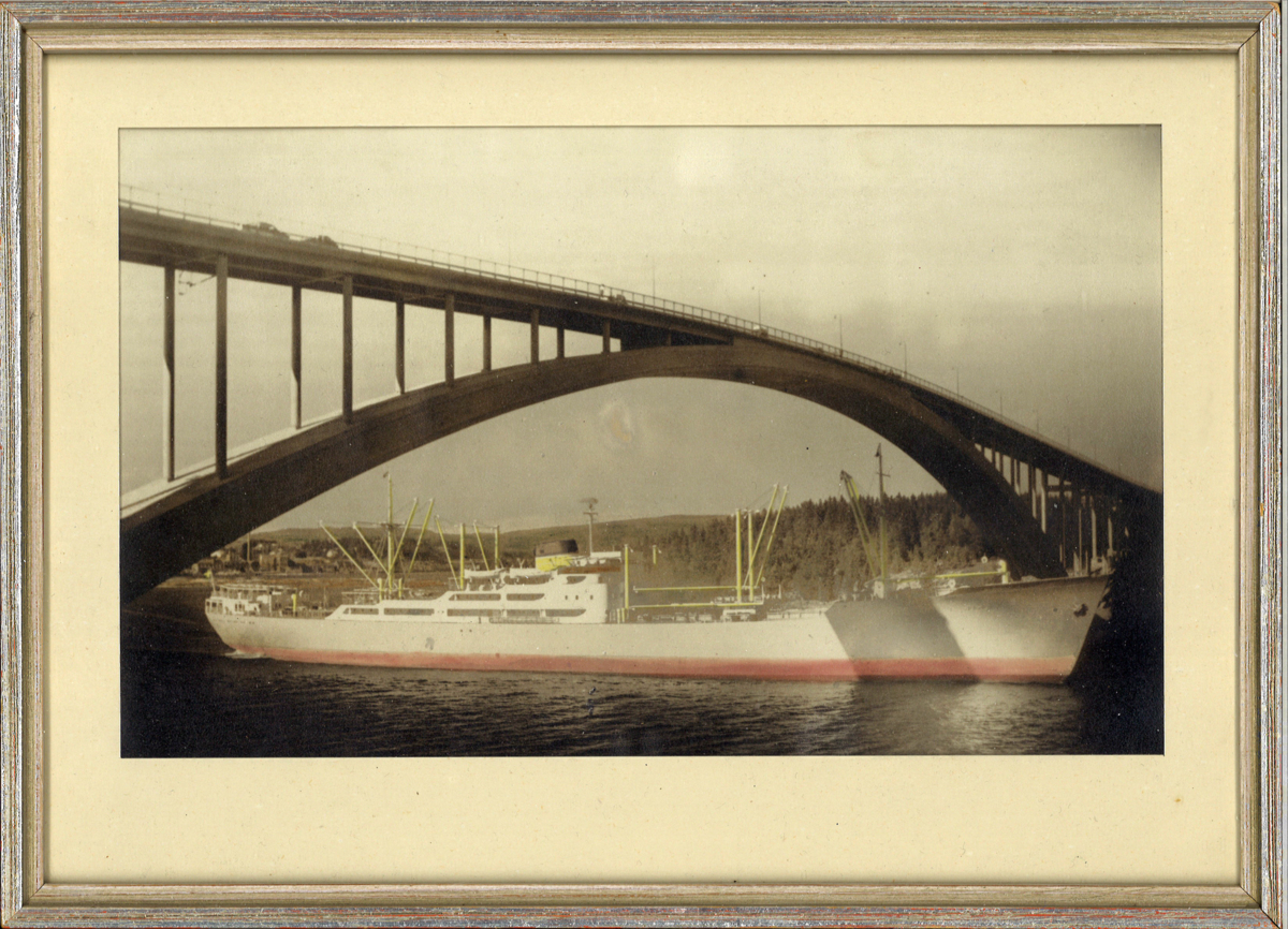 Inramat fotografi fartyg åkande Sandöbron