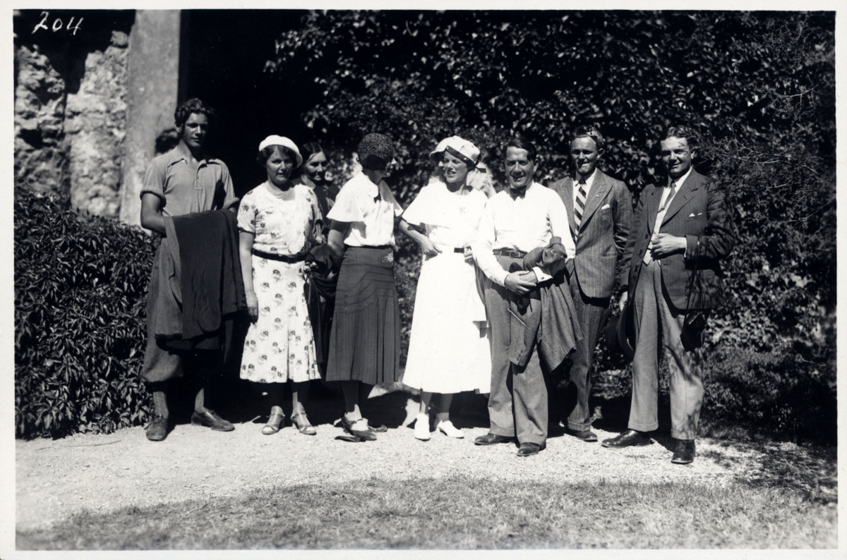Marta och Bror Centerwall deltog i en kryssning i Östersjön med Svenska Amerika Liniens GRIPSHOLM sommaren 1933. På bilden står de utomhus i Visby tillsammans med en grupp medpassagerare. Fotot är daterat till augusti 1933.