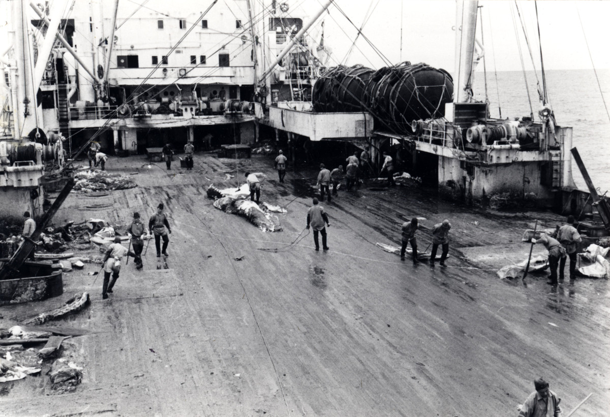 Styckning av valar ombord det japanska valfångstfartyget NISSHIN MARU 3.