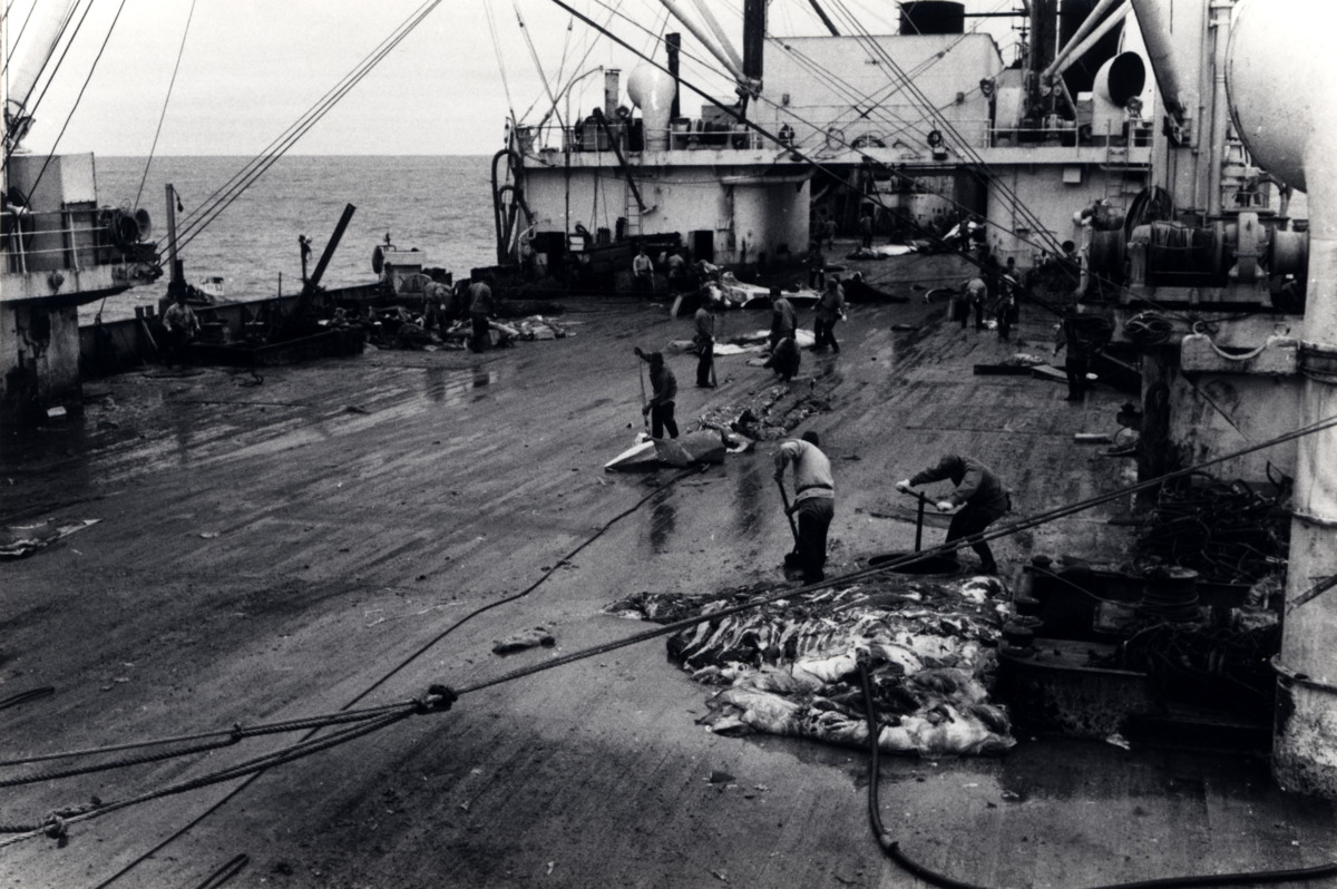 Styckning av valar ombord det japanska valfångstfartyget NISSHIN MARU 3.
