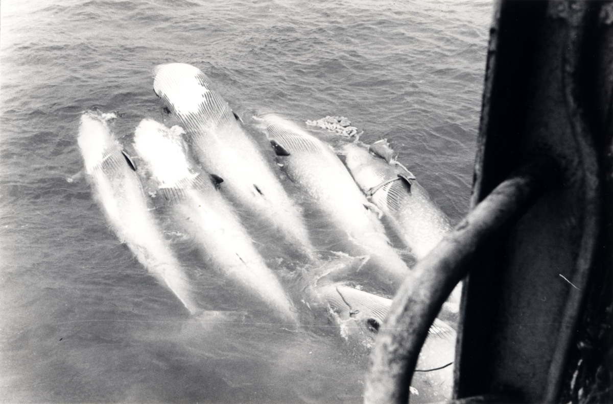 Valar nedanför det japanska valfångstfartyget NISSHIN MARU 3