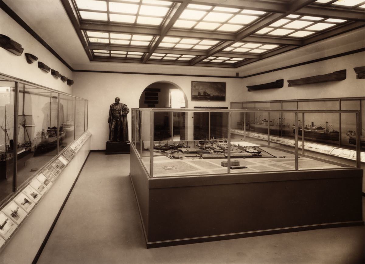 Fotografiet är taget 1933 då Sjöfartsmuseets byggnad nyligen uppförts och inretts, sannolikt strax före eller i samband med invigningen. Byggnaden stod klar 1 oktober 1932 och därefter byggdes utställningar och andra interiörer fram till invigningen 14 juli 1933.