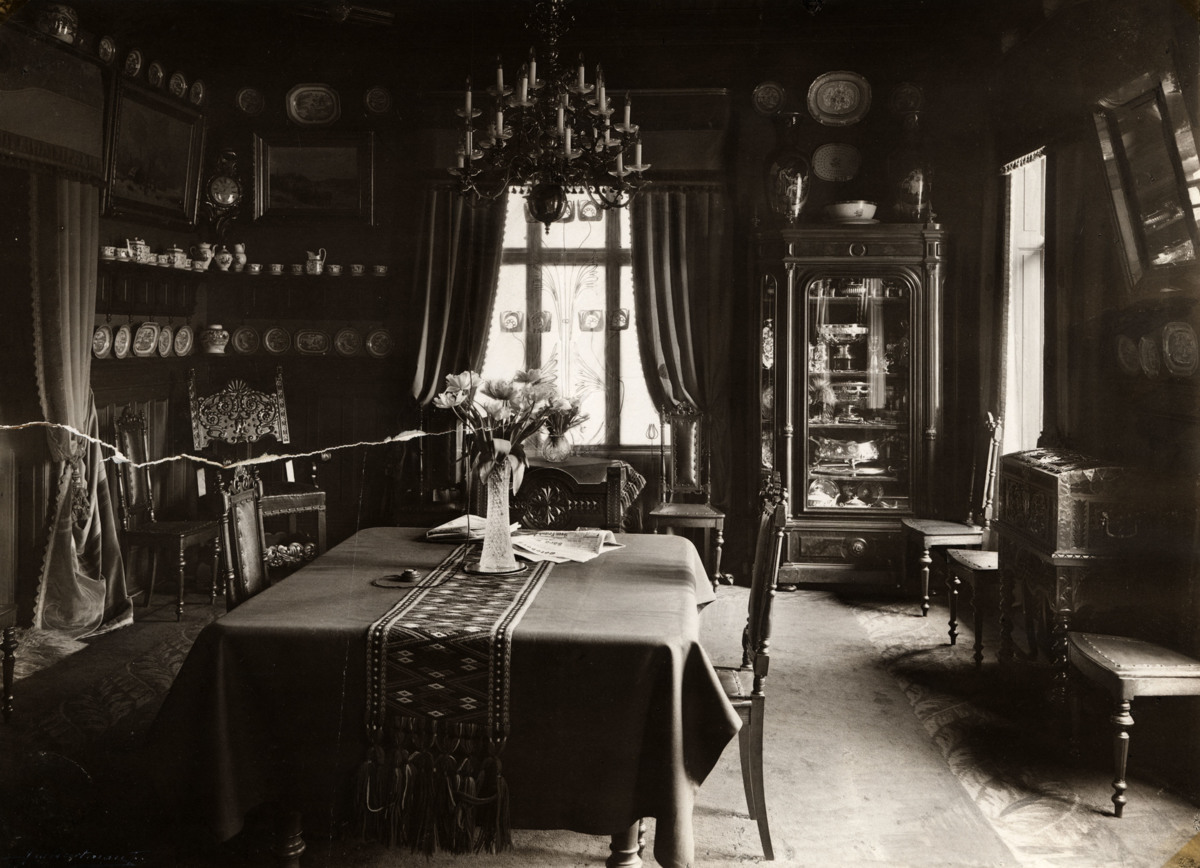 Interiörbild från paret Kennedys bostad på Gamla Varvet i Göteborg. Sannolikt fotograferad under perioden 1872 - 1896 då George Douglas Kennedy var varvschef vid Gamla Varvet.