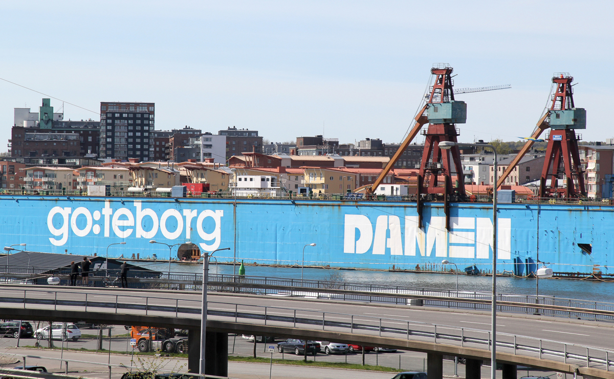 Fotografiet togs från terassen bakom Sjöfartsmuseet den 6 maj 2016, i samband med att Götaverkens docka bogserades bort från Göteborg. Den 254 meter långa flytdockan hade då sålts, efter Götaverkens slutgiltiga nedläggning 2015, till ett varv i Dunkerque i Frankrike och skulle levereras till de nya ägarna.