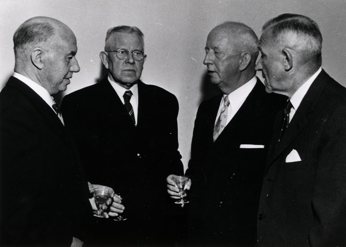 Kapten Gunnar Anderberg står tillsammans med tre okända herrar.