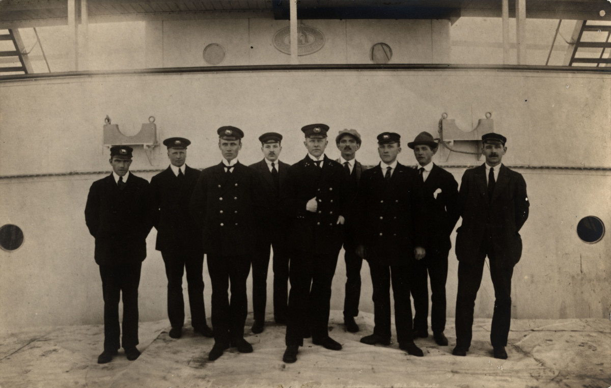 Gå tillbaka till sökPublic DomainLägg till i Min samlingKopiera länkSkriv utKapten Gunnar Anderberg i sällskap med sina officerareAktörerGunnar Anderberg (1881 - 1965), AvbildadKategorifartygsexteriör (fartyg) befäl och besättning (Personfoto)Dateringomkring 1905 - 1925Material och teknikpapper, fotografiDimensionerGrundmått 9,00 x 14,00 cmInventarienummerSMGF15549UtställdInte utställd på museet
