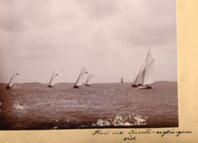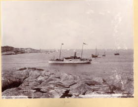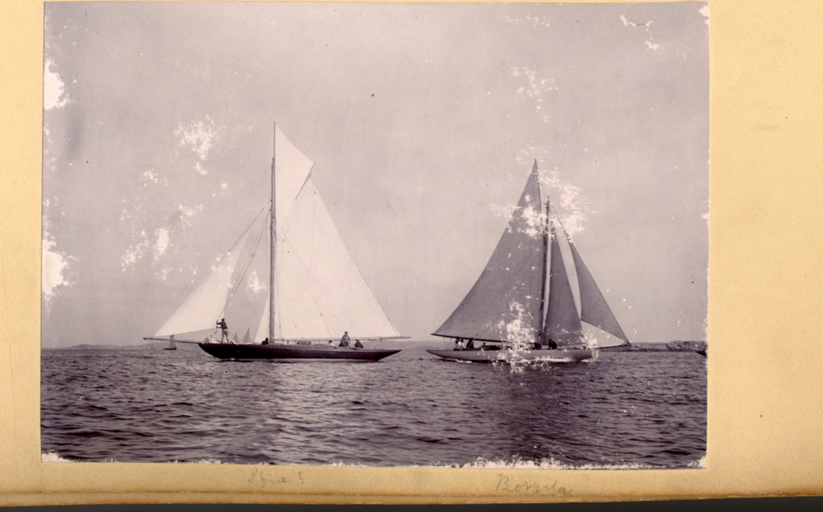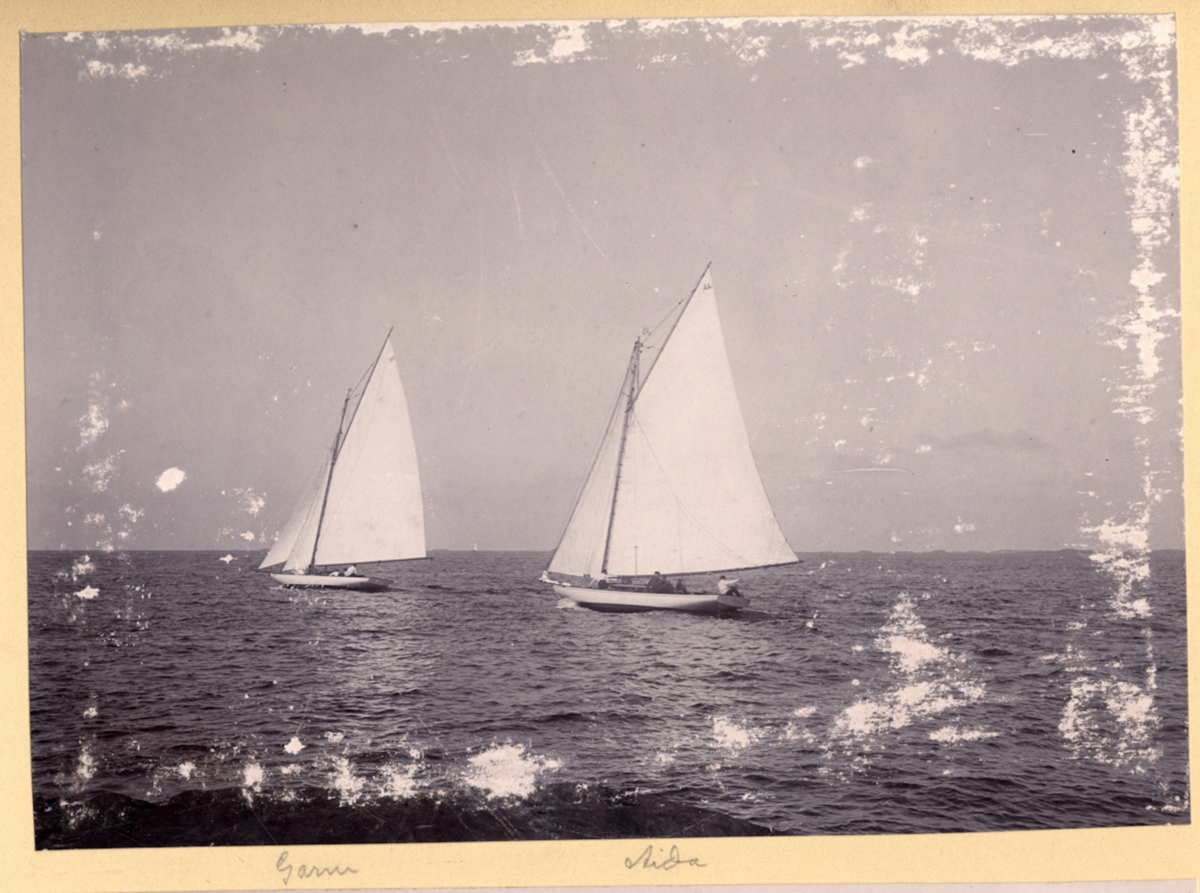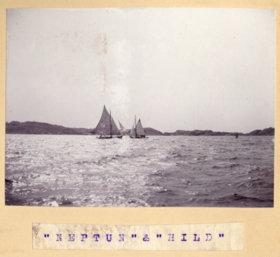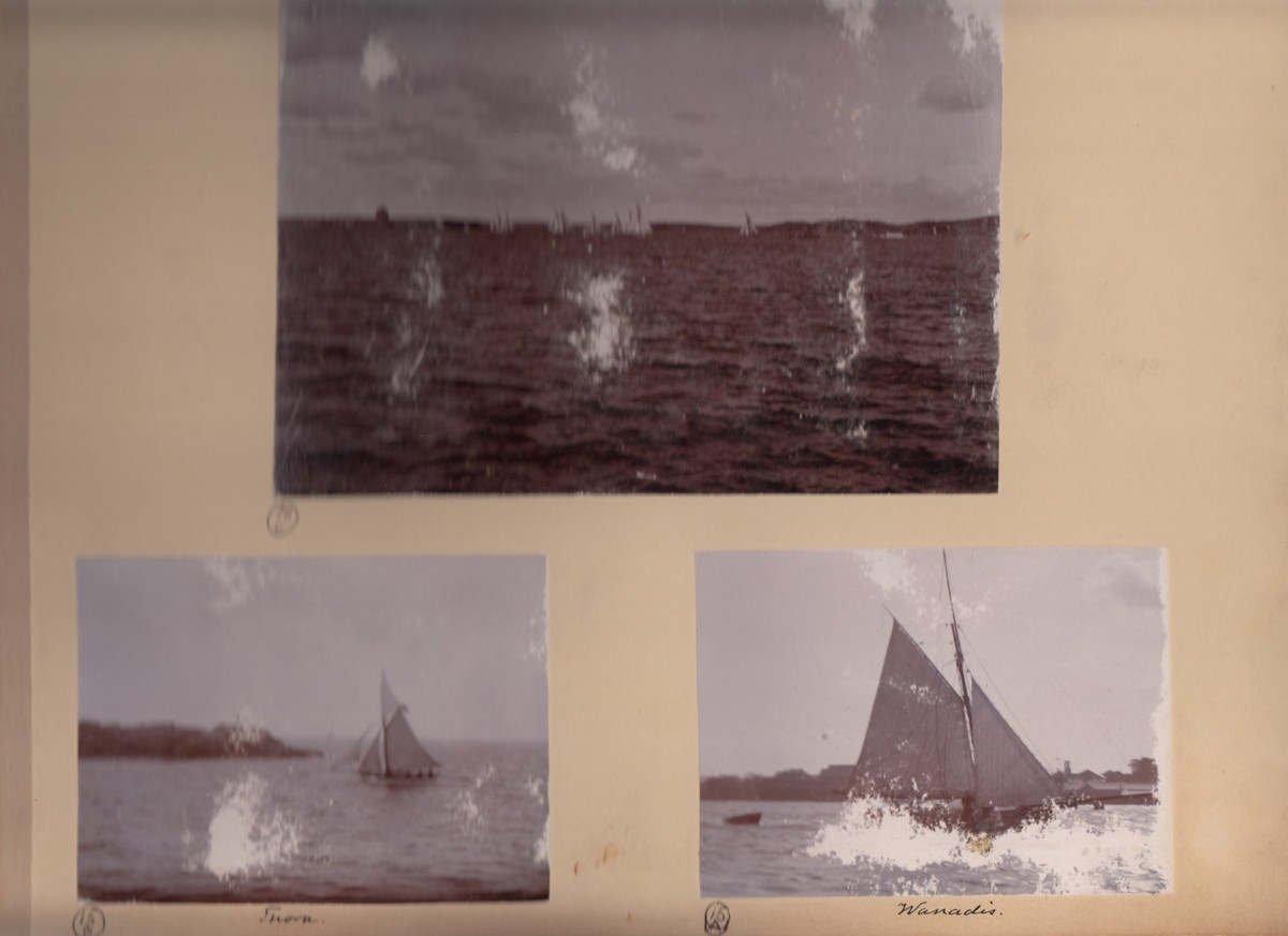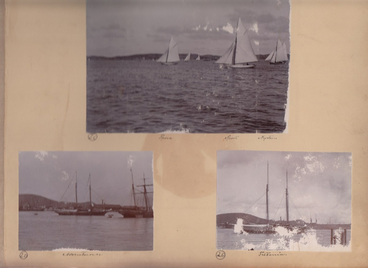 Fotoalbum innehållande svartvita fotografier från åren 1890, 1895 och 1899 föreställande båtar och personer med anknytning till GKSS.