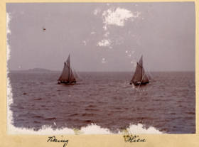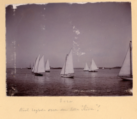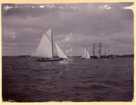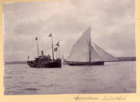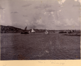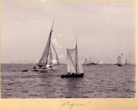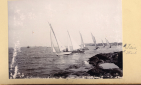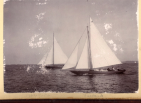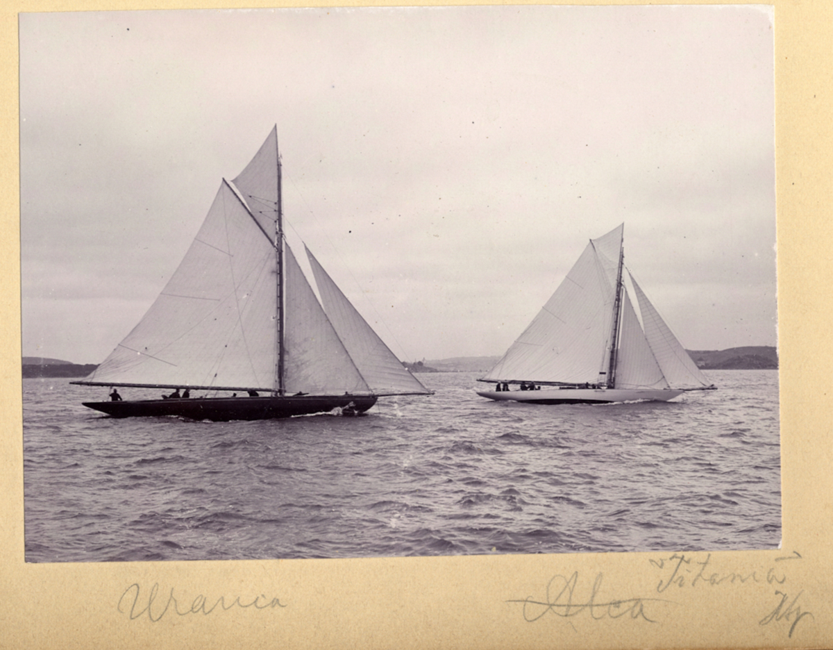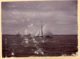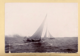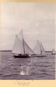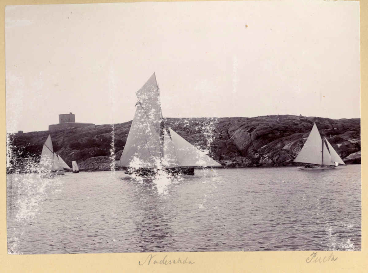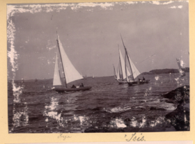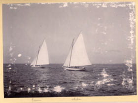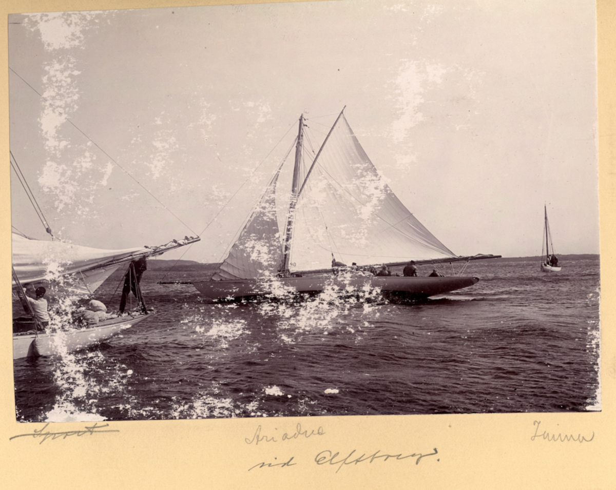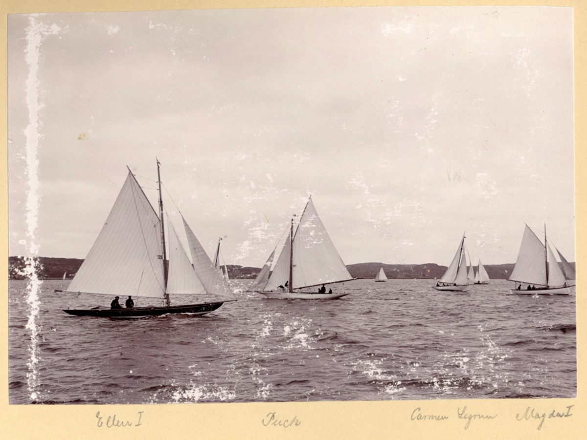 Fotoalbum innehållande svartvita fotografier från åren 1890, 1895 och 1899 föreställande båtar och personer med anknytning till GKSS.