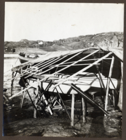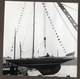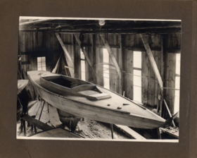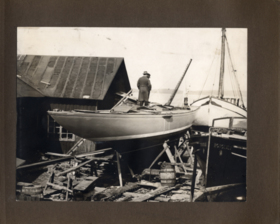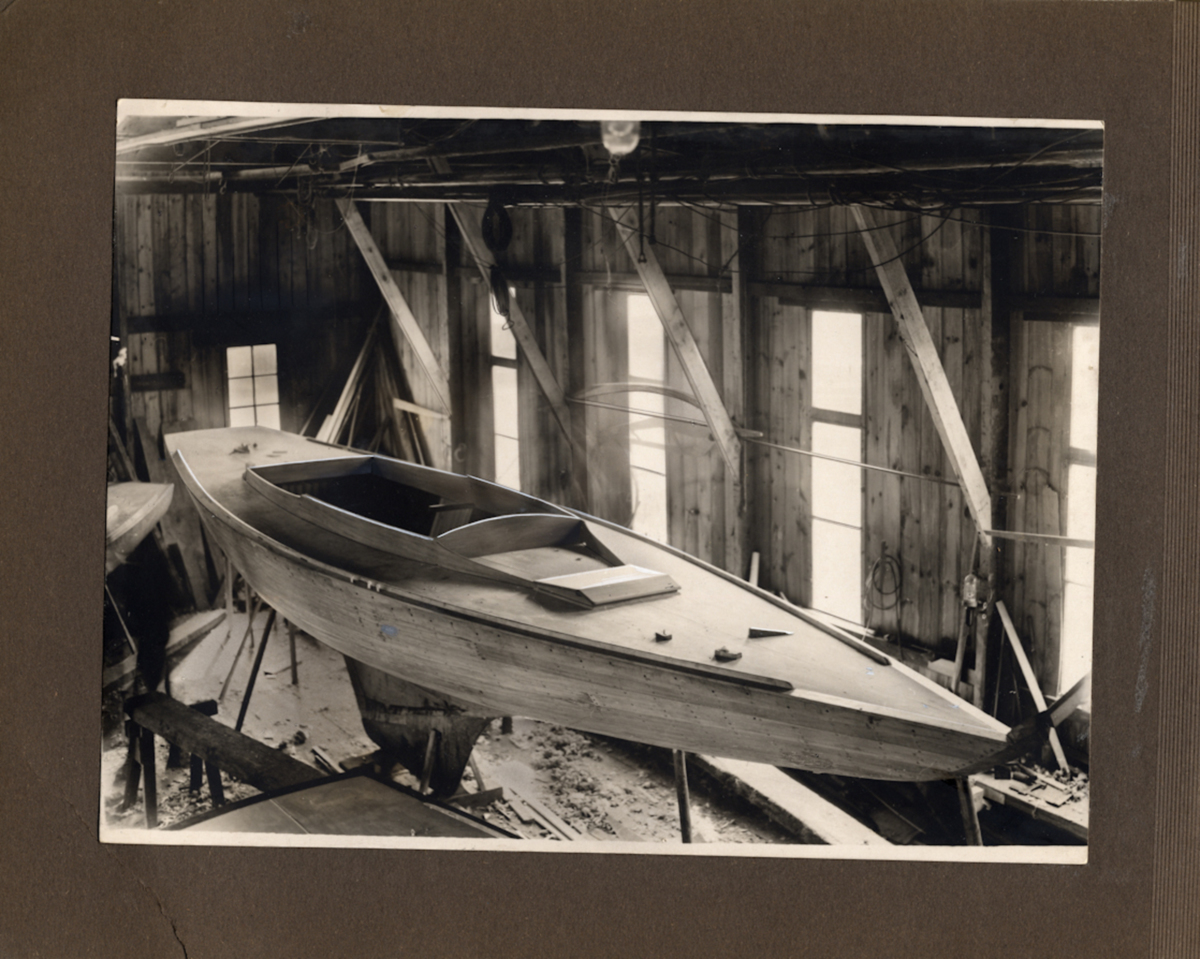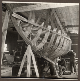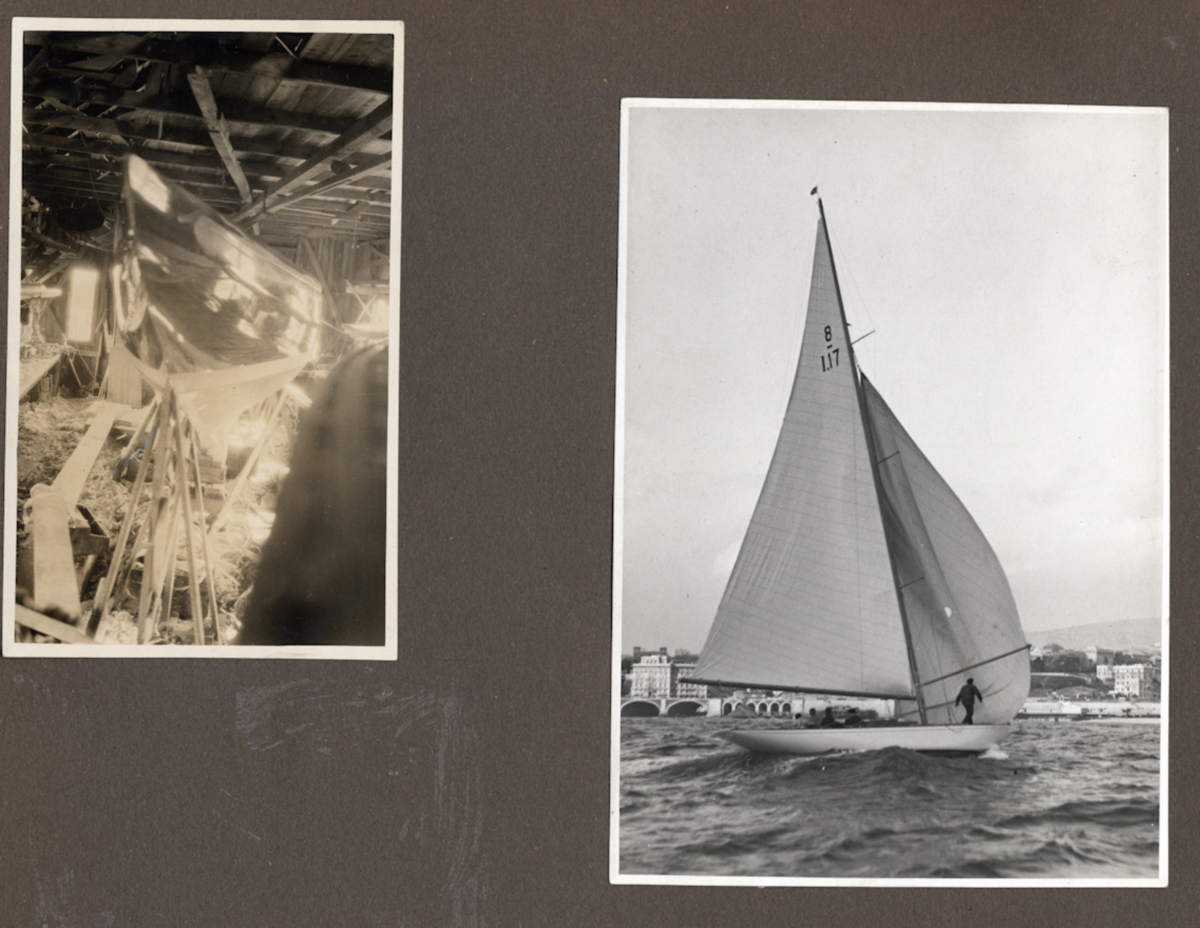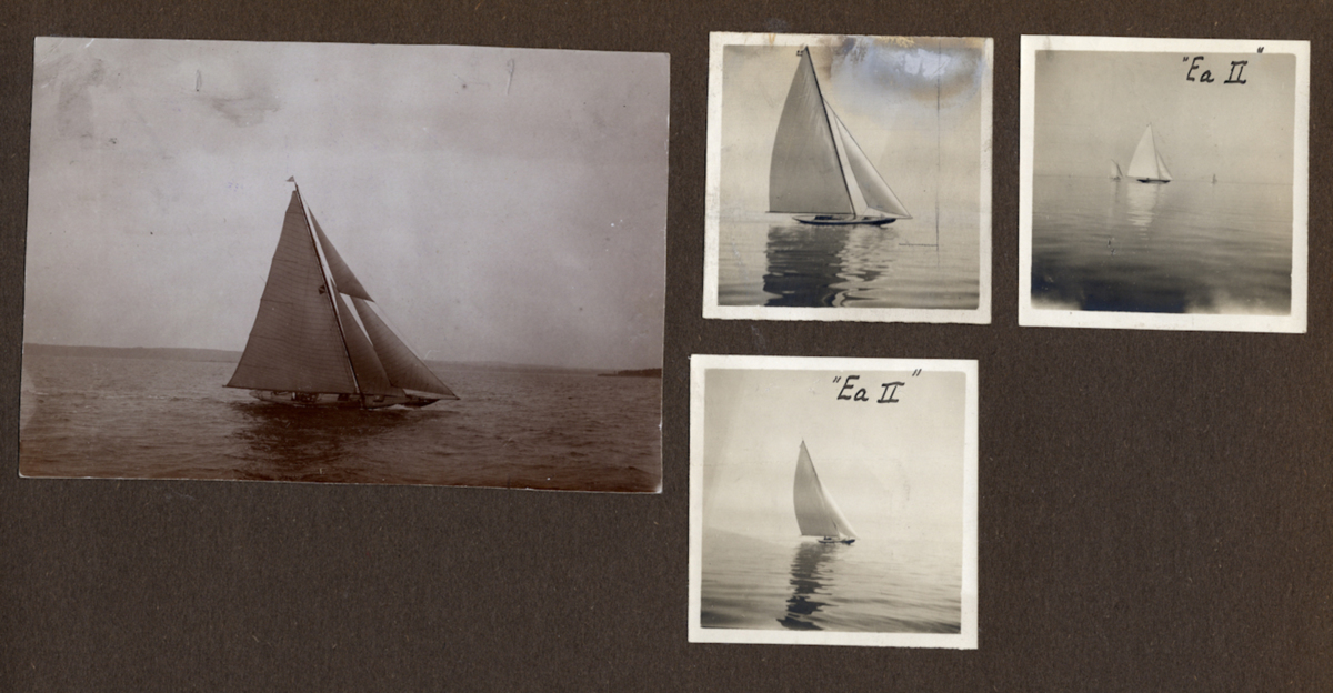 Fotoalbum innehållande svartvita fotografier föreställande båtar och personer med anknytning till GKSS.