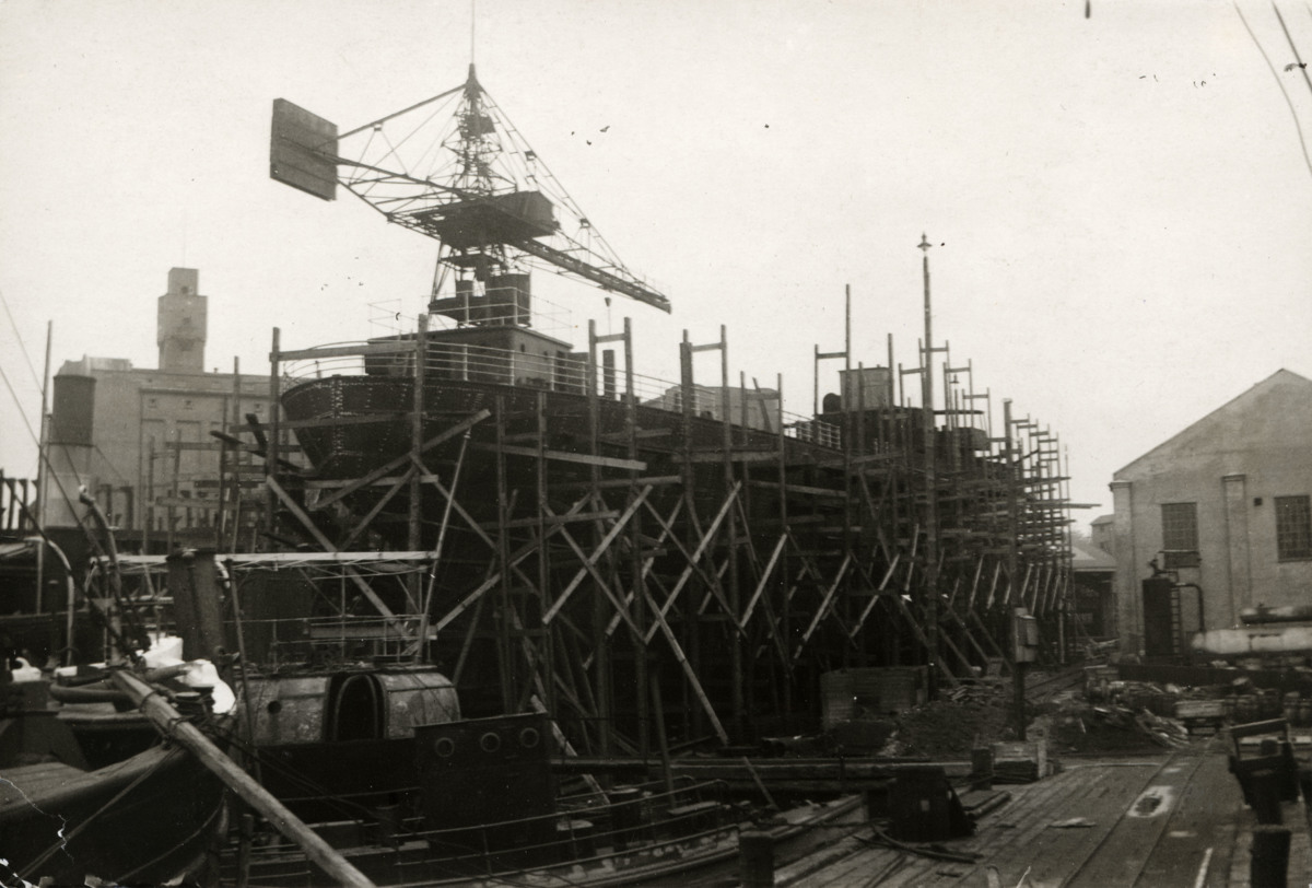 Fartyg under konstruktion på stapelbädd på Eriksbergs varv 27/3 1920