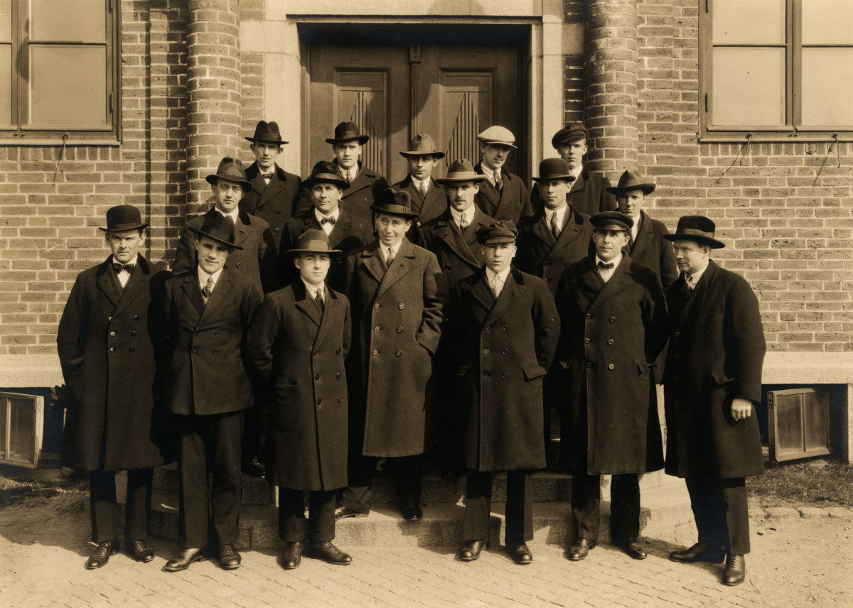 På fotografiet står 1927 års skepparklass utanför Navigationsskolan i Göteborg. Klassen bestod av 26 personer - 17 fick examen.