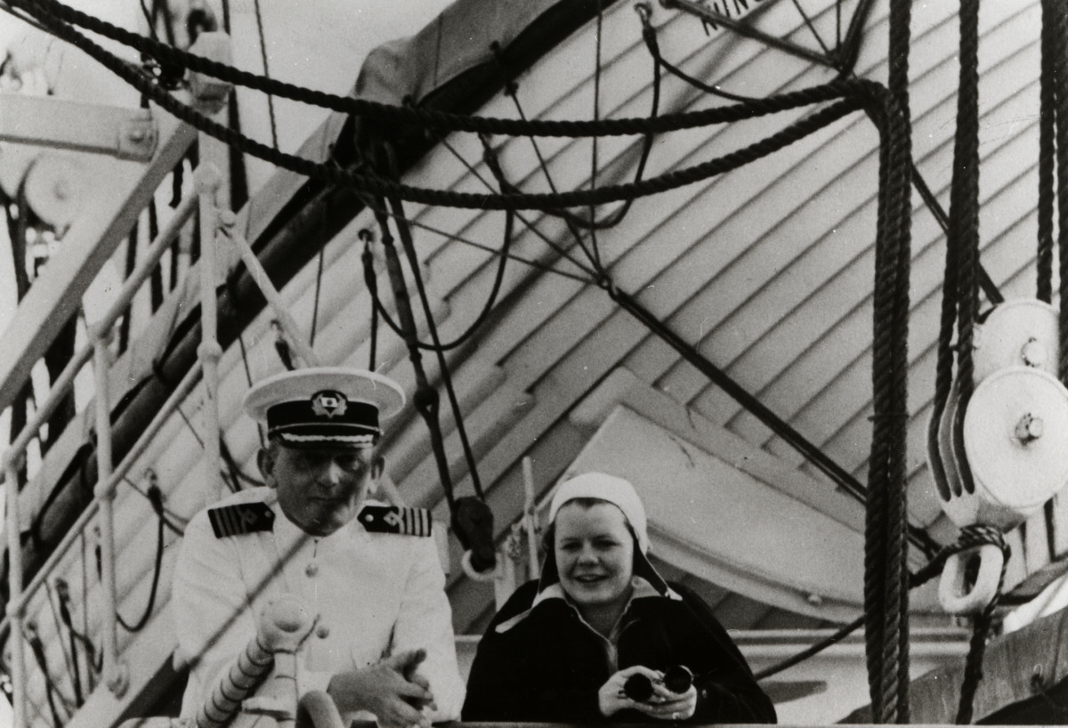 Madeleine Hamilton och kapten Helge Elsén ombord KUNGSHOLM