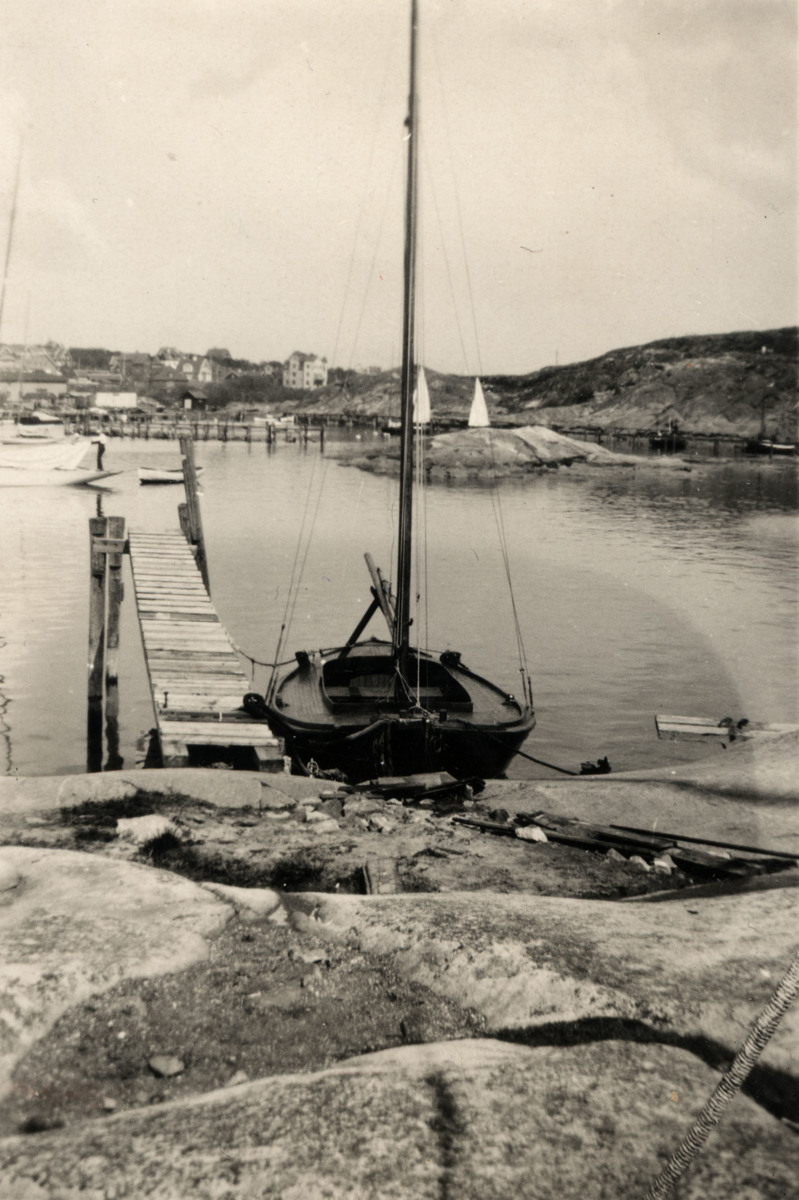 Sjöscouternas segelbåt INGELA II vid en brygga