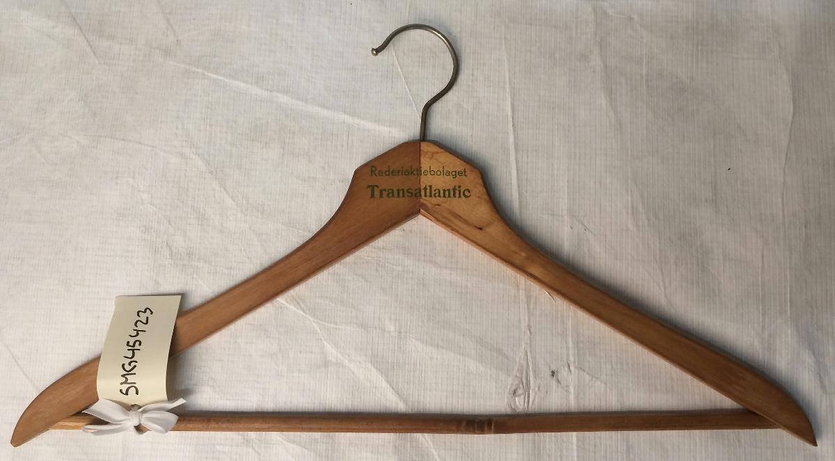 Klädgalge från fartyget CUMULUS. Galgen kommer från en av passagerarhytterna efterhand som passagerare slutade åka med lastfartygen övertogs galgarna av personalen. När personalen åke hem vis ledigheten packades kläderna ofta hängandes på galgarna.