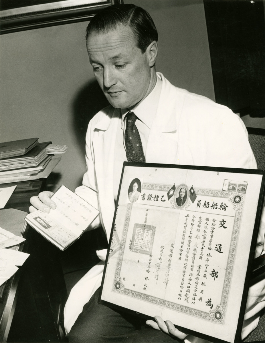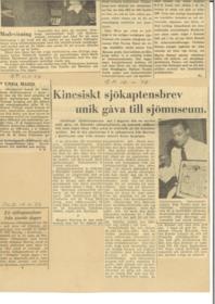 Påskrift: Museiföremål (oläsligt) Kinesiskt sjökaptensbrev.