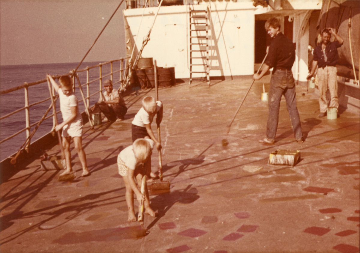Påskrift: Däcksmålning på M/S Guayana Atlanten 1962