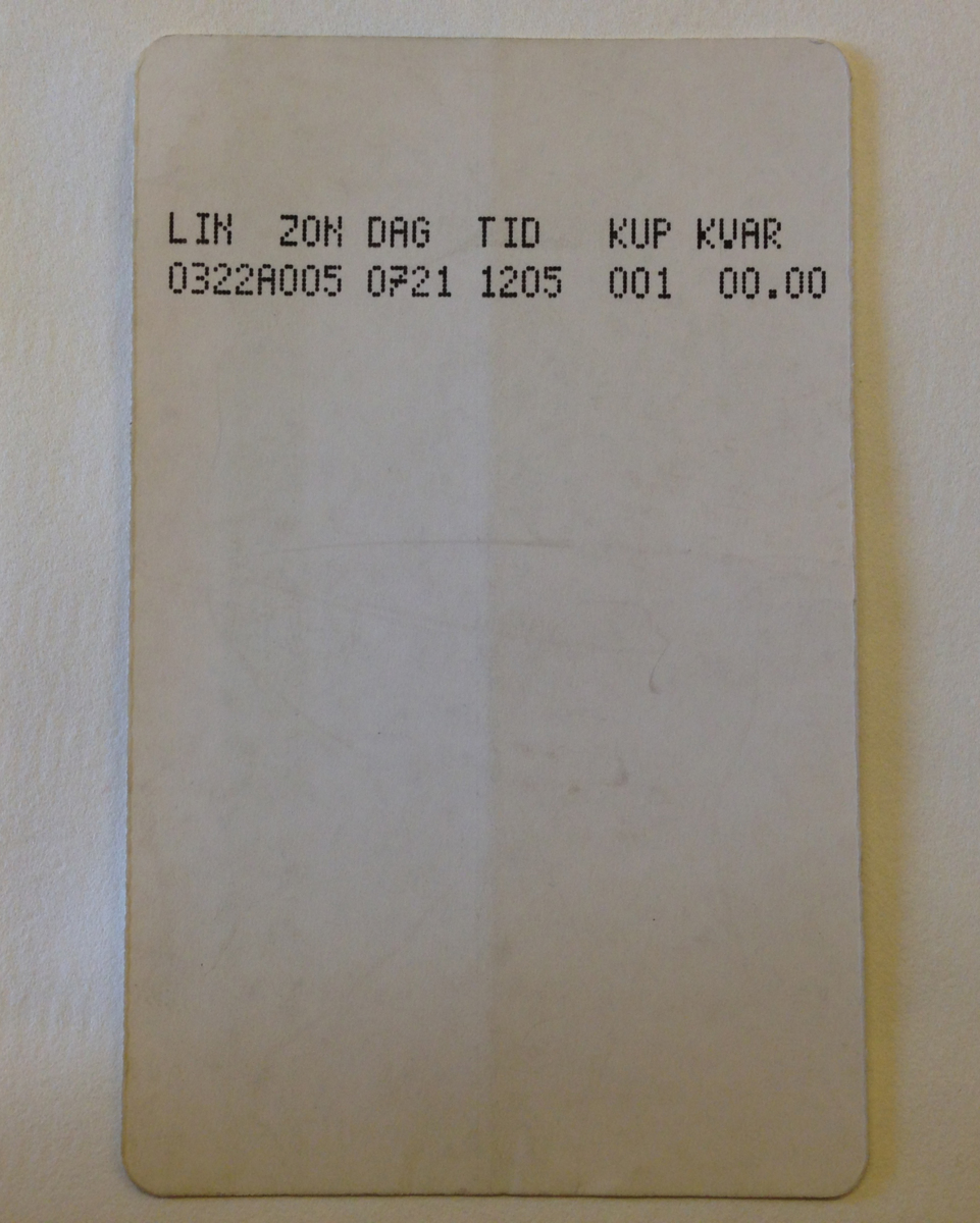 Stämpel: Lin 0322A Zon 005 Dag 0721 Tid 1205 Kup 001 Kvar 00.00