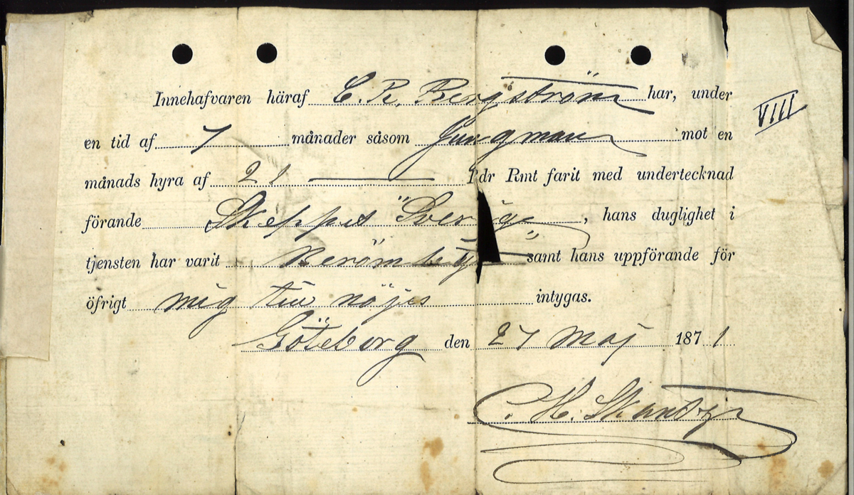 Gå tillbaka till sökPublic DomainLägg till i Min samlingKopiera länkSkriv utTjänstgöringsbetygAktörerCarl Richard Bergström (1853 - 1938), BrukareKategoribetyg (Dokument, handlingar, personliga handlingar)Datering1871Material och teknikpapper, tryck, handskriftDimensionerGrundmått 12,00 x 21,00 cmInventarienummerSMG12337, 4UtställdInte utställd på museet
