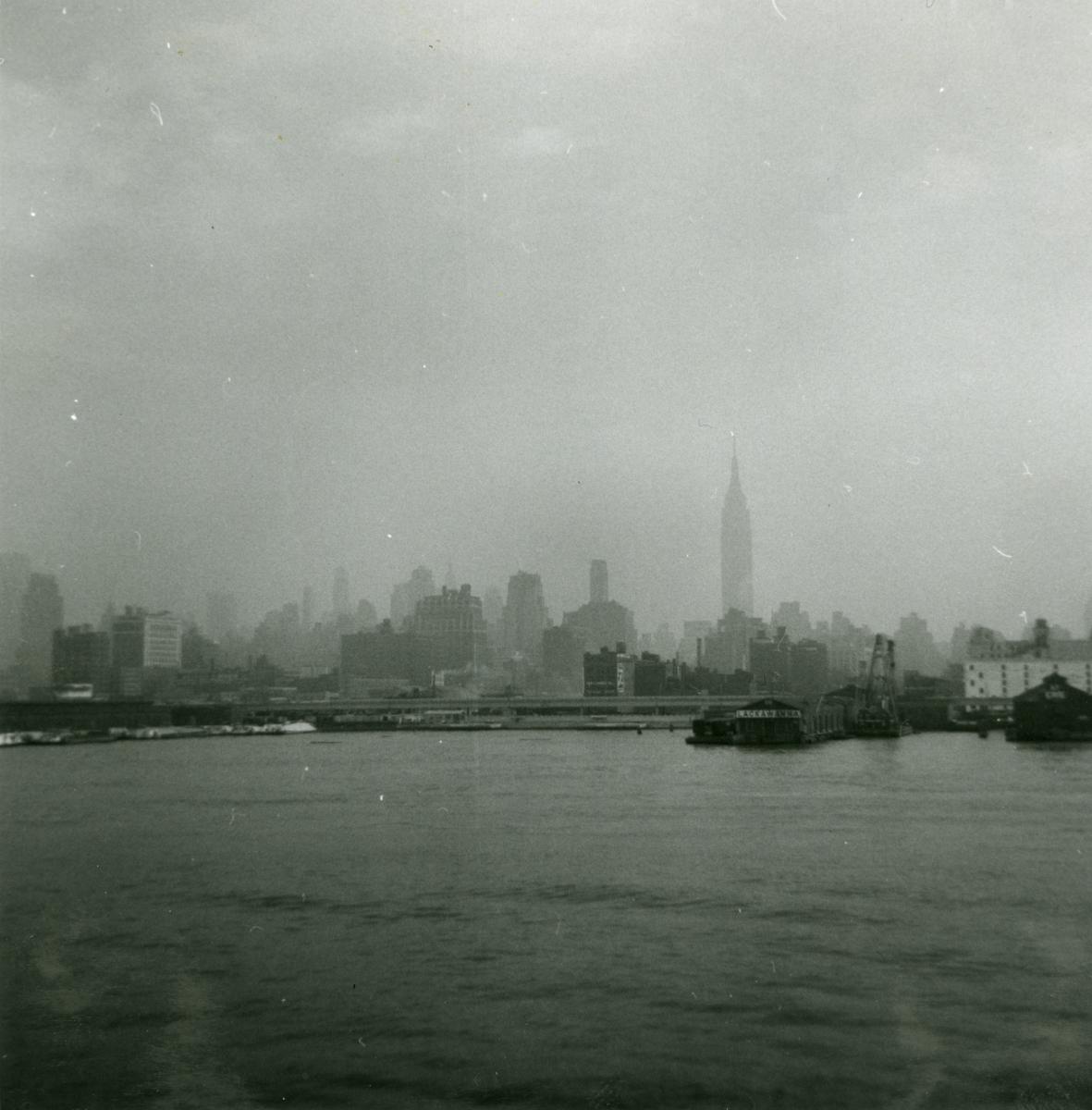 Utsikt över New Yorks skyline 9 april 1959. I bakgrunden skymtar Empire State Building.