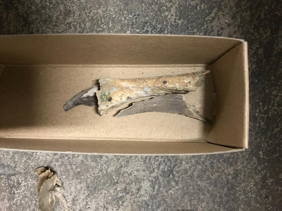 Föremålet hittades av dykare från Göteborgs amatördykarklubb som 1949-1966 genomförde dykningar vid de så kallade Slamansskeppen, i samarbete med Sjöfartsmuseet. Just detta föremål hittas 1955 eller 1958 (olika uppgifter förekommer).