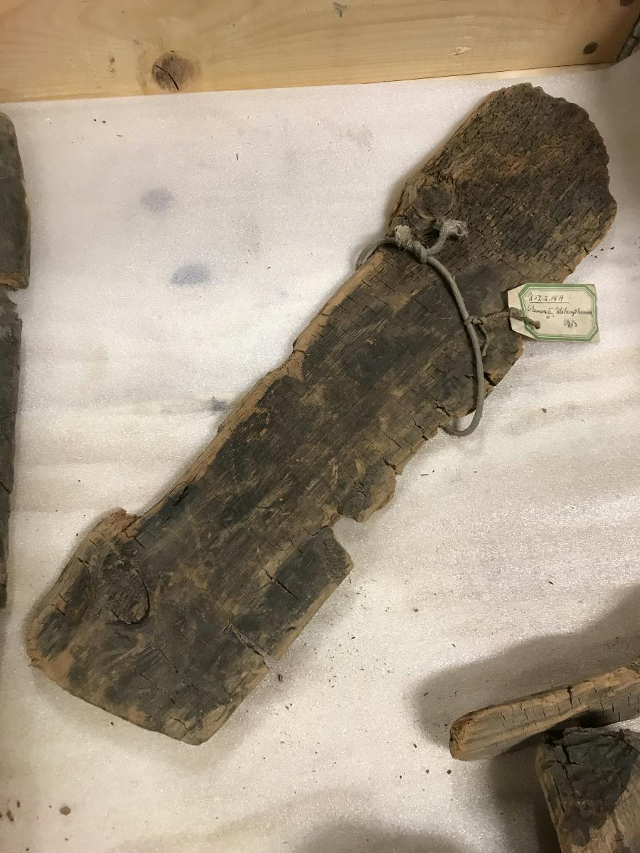 Föremålet hittades av dykare från Göteborgs amatördykarklubb som 1949-1966 genomförde dykningar vid de så kallade Slamansskeppen, i samarbete med Sjöfartsmuseet. Just detta föremål hittas 1955 eller 1958 (olika uppgifter förekommer).