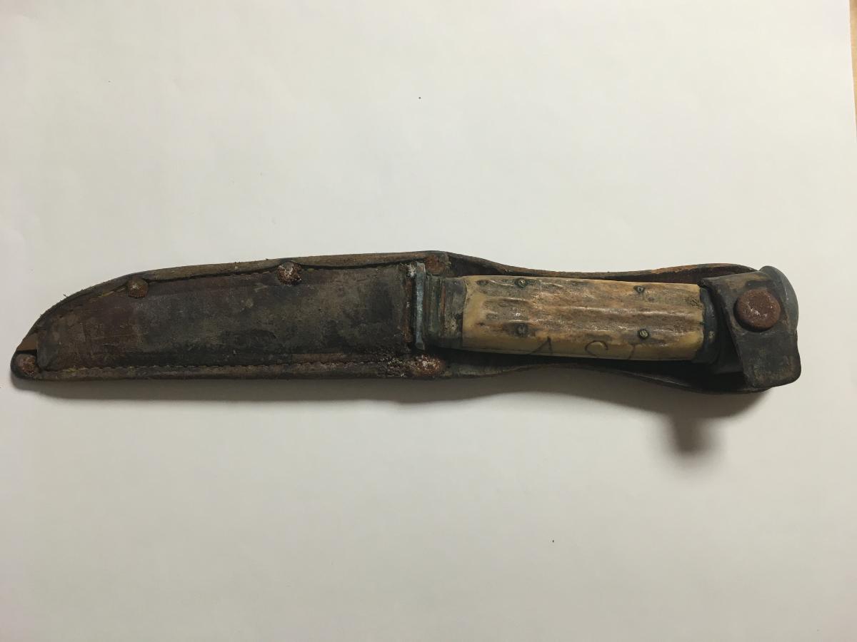 a/ kniv i metall, med trähandtag. Initialer A. SJ (för Arne Sjögren) inristade på handtaget.