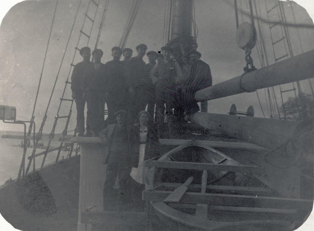 Längst fram, nedtill från vänster: kapten Carl Ahlgren och hans fru Ellen Ahlgren