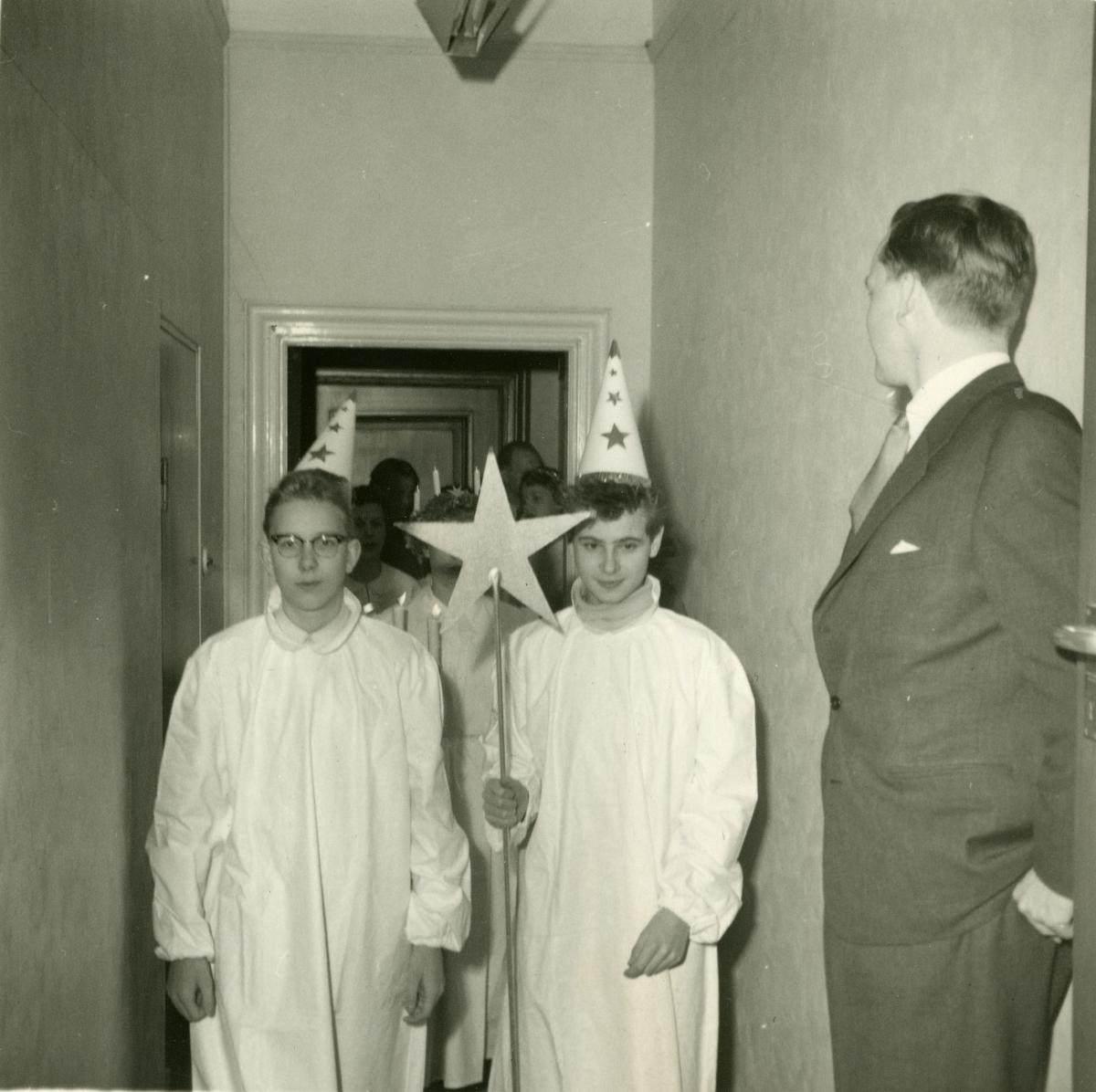 Bilden verkar inte vara tagen ombord på ett av Svenska Orientlinjens fartyg utan i en kontorsmiljö